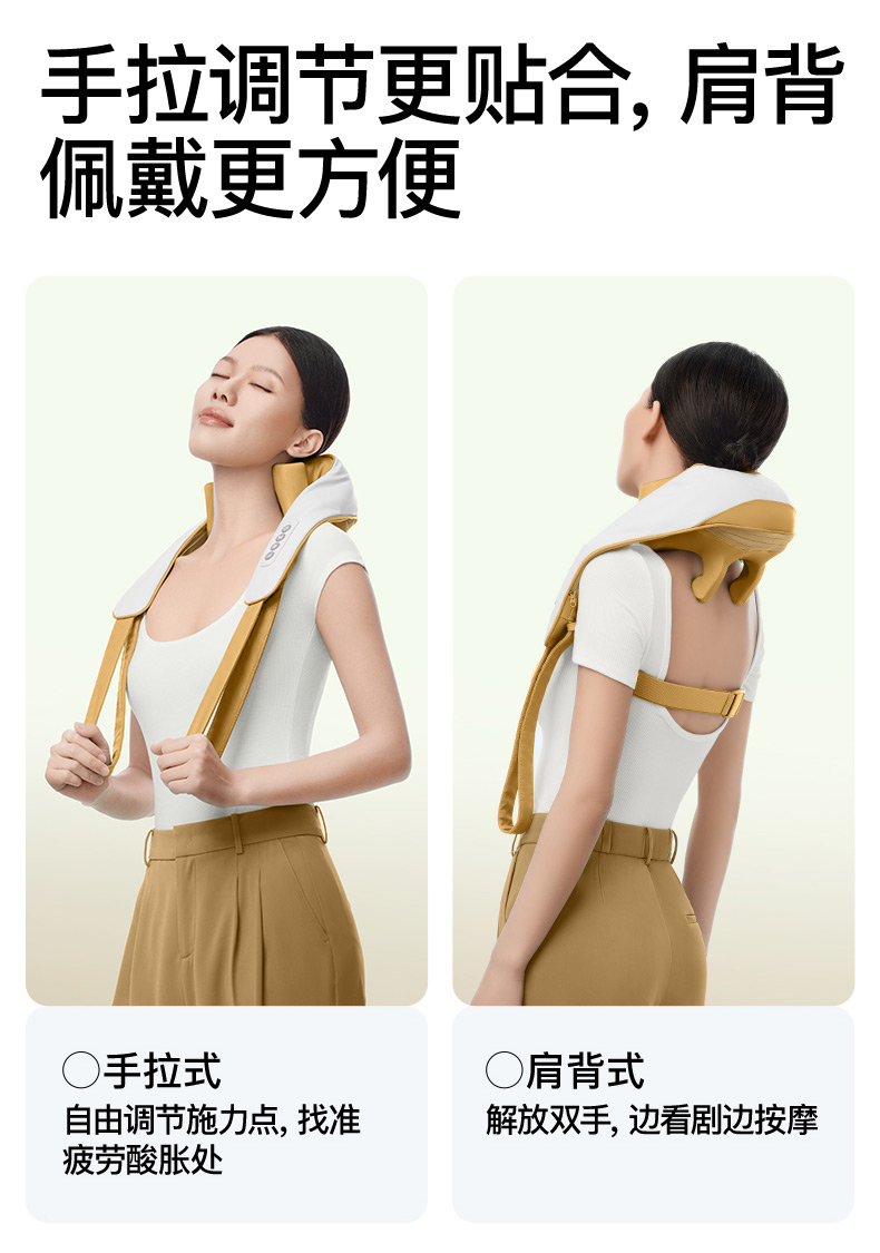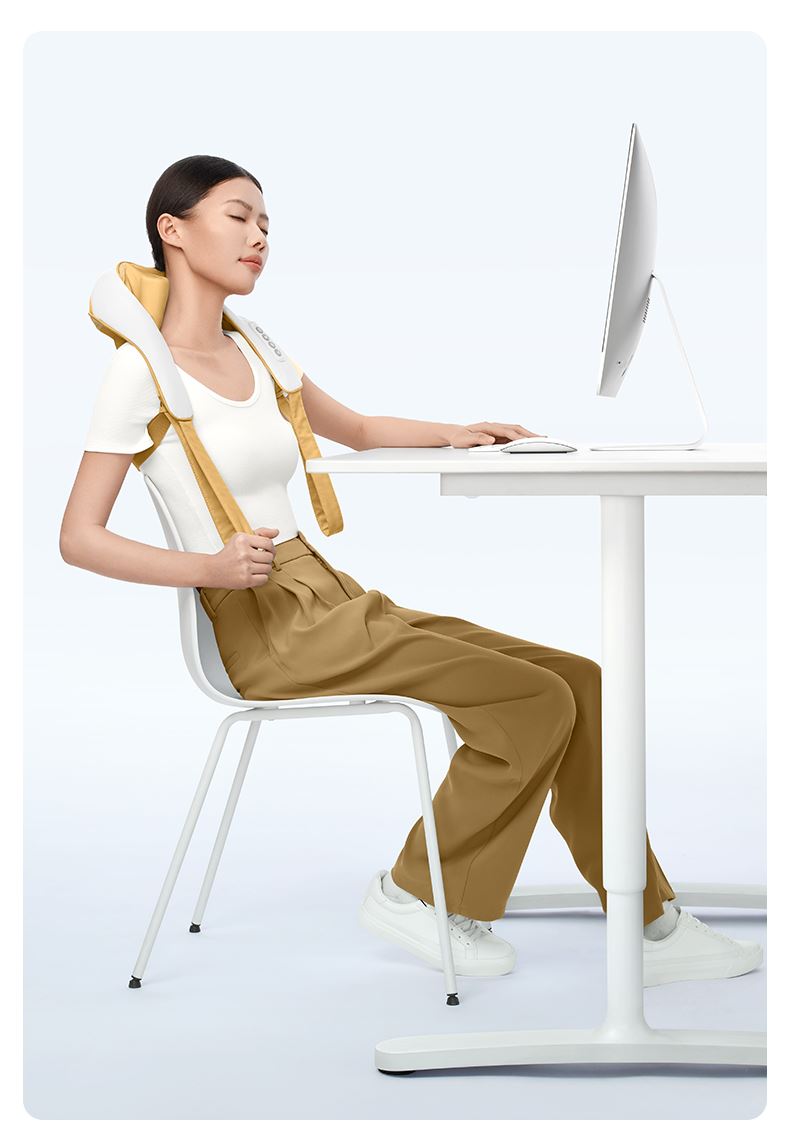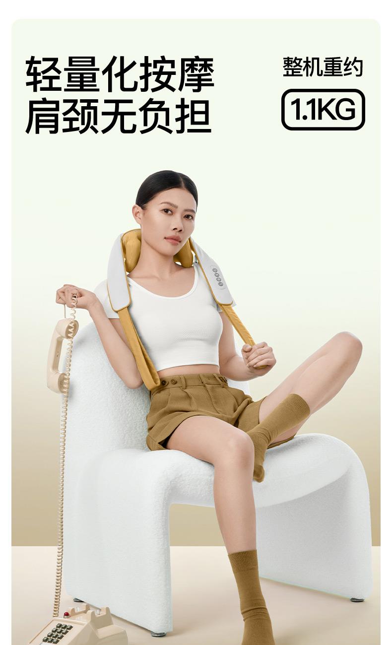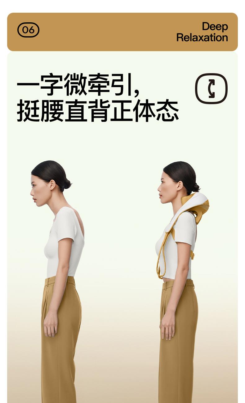 ●6維按摩,全肩頸的放松,加長(zhǎng)按摩頭,6維多觸點(diǎn)按摩,實(shí)現(xiàn)從頸部到斜 方肌、再到肩膀 的全覆蓋。