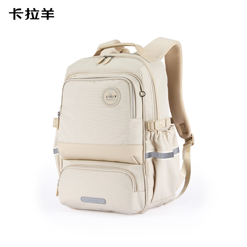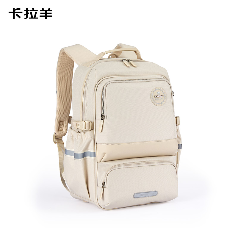卡拉羊中學(xué)生防下墜減負(fù)風(fēng)琴書包CX5190米白