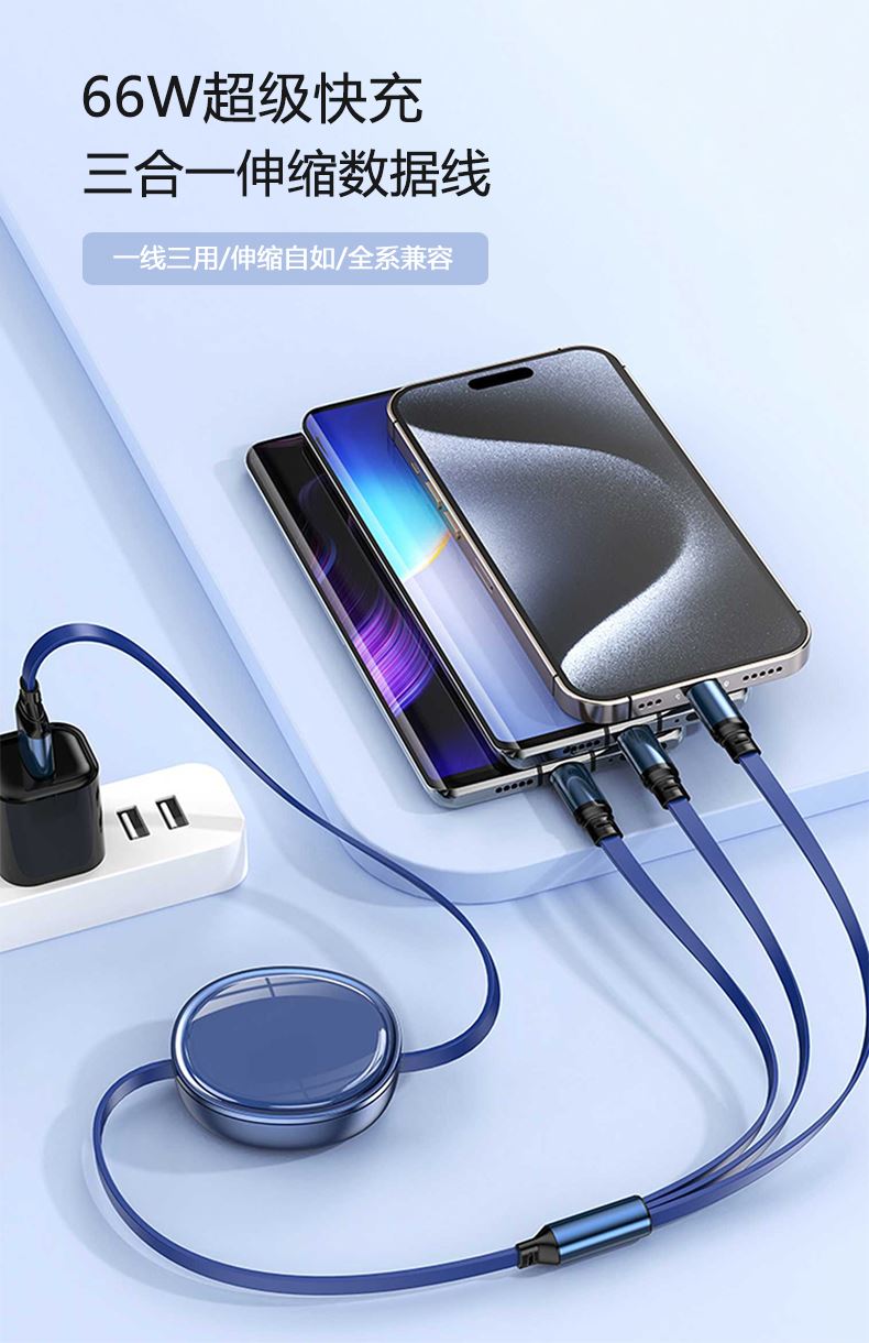 1、桌面可立便攜小風(fēng)扇 可手持 可立桌面 三檔風(fēng)速可調(diào) 底座90°翻轉(zhuǎn) 2、66W超級快充一拖三伸縮數(shù)據(jù)線 兼容蘋果15系列 五檔伸縮調(diào)節(jié) 1.2米長度設(shè)計 TPE材質(zhì)經(jīng)久耐用 三種充電接口滿足各種手機