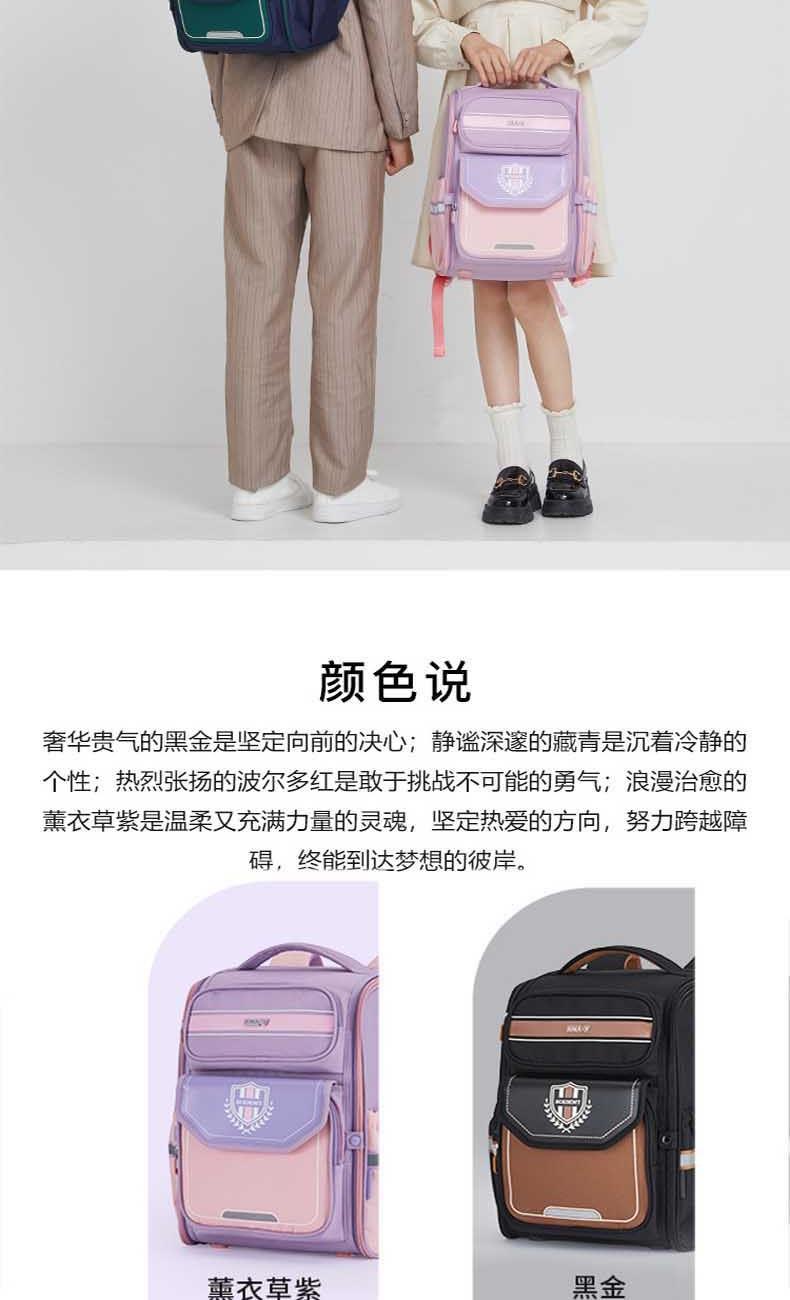 貨號(hào):CX2693 主體面料:織物;里料:織物 顏色:黑金、薰衣草紫 定位:135CM以上/ 小學(xué)高年級(jí)功能書包 凈重:0.9kg 22L