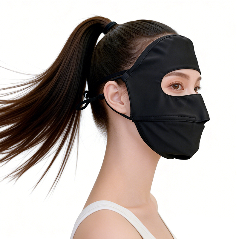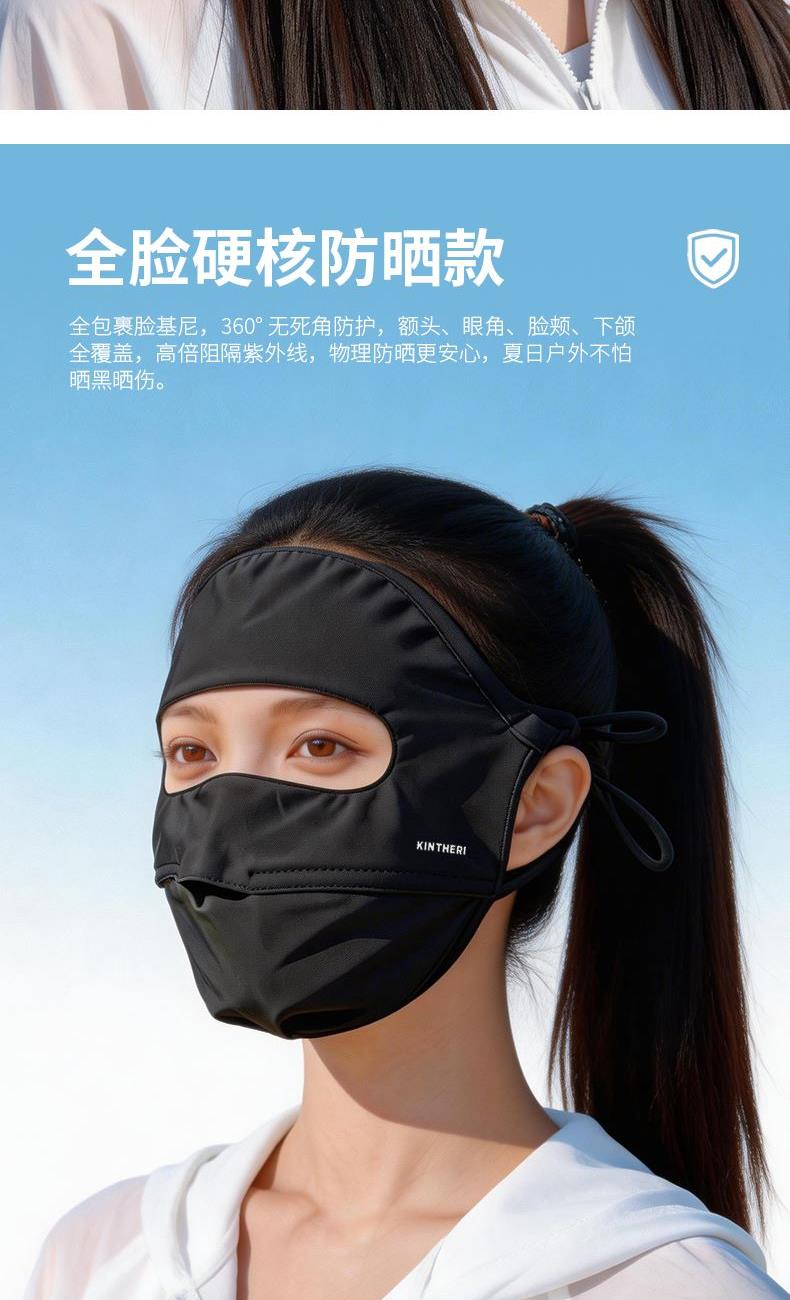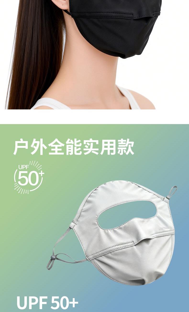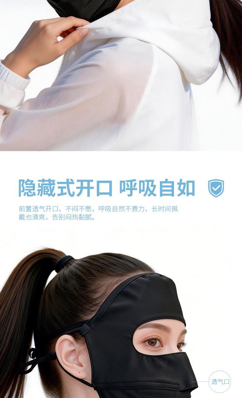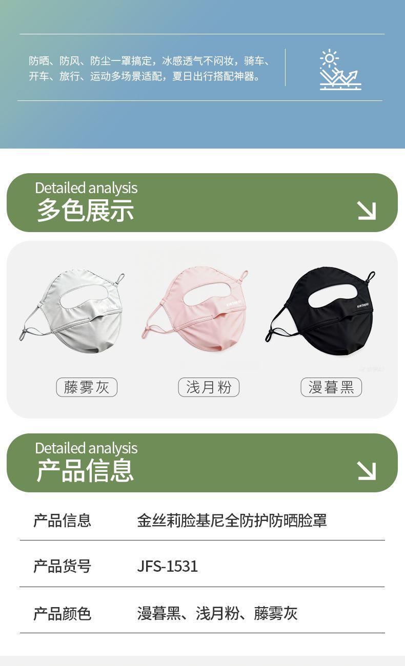貨 號(hào): JFS-1531 顏 色: 漫暮黑、淺月粉、藤霧灰 產(chǎn)品賣點(diǎn): 實(shí)力防曬50+、輕薄隱形防護(hù),隔離紫外線透氣超穩(wěn),水洗不減防曬力、0透光護(hù)眼角,涼感升級(jí),持久冰爽; 全臉硬核防曬,全遮光護(hù)眼角,隱藏式開口,呼吸自如,輕薄涼感透氣;吸濕速排舒適,立體修飾臉型,四面高彈不緊繃。 尺寸:F(均碼)