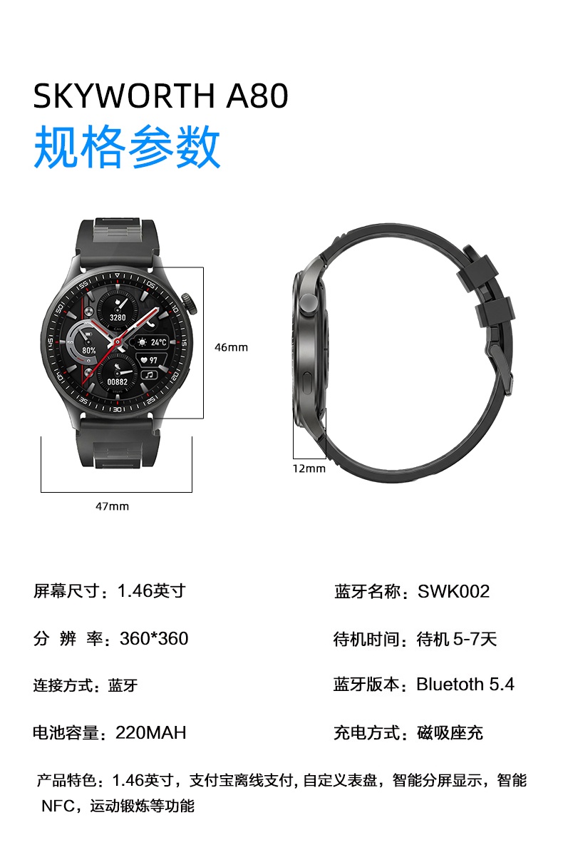 智能手表尺寸(mm):47*46*12mm