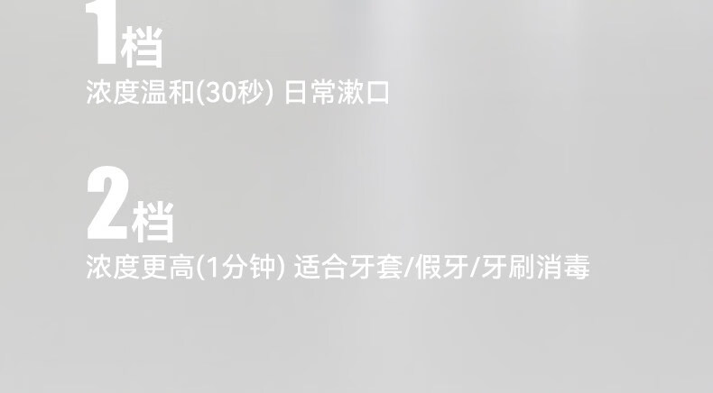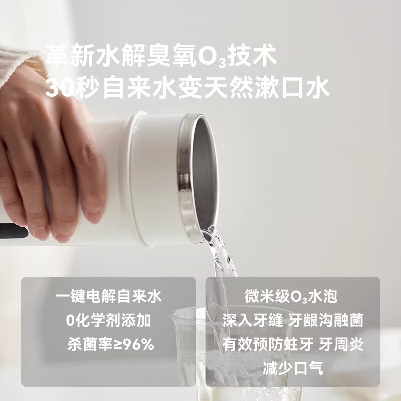 顏色:陶白色 毛重:0.85kg 容量:300ml 額定功率:5W 電池容量:1200mAH 產(chǎn)品尺寸:115.4*177mm(含底座) 包裝尺寸:270*210*110mm 條碼 : 6977735713175 1. 全新水解臭氧技術(shù),0化學添加,自來水秒變安全清漱水 2. 2檔臭氧濃度調(diào)控既能清潔口腔也能消毒牙具 3. 無線便攜,持久續(xù)航,滿電一次能用上百次