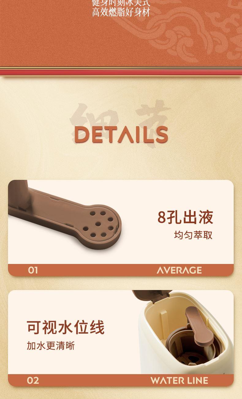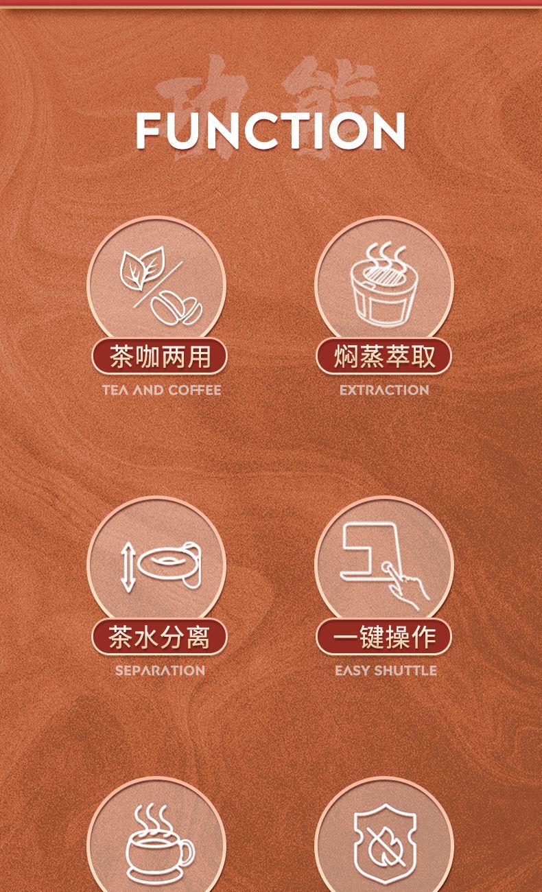 創(chuàng)新加入一鍵茶水分離功能,可存水保溫,兼容煮茶泡茶和咖啡功能。