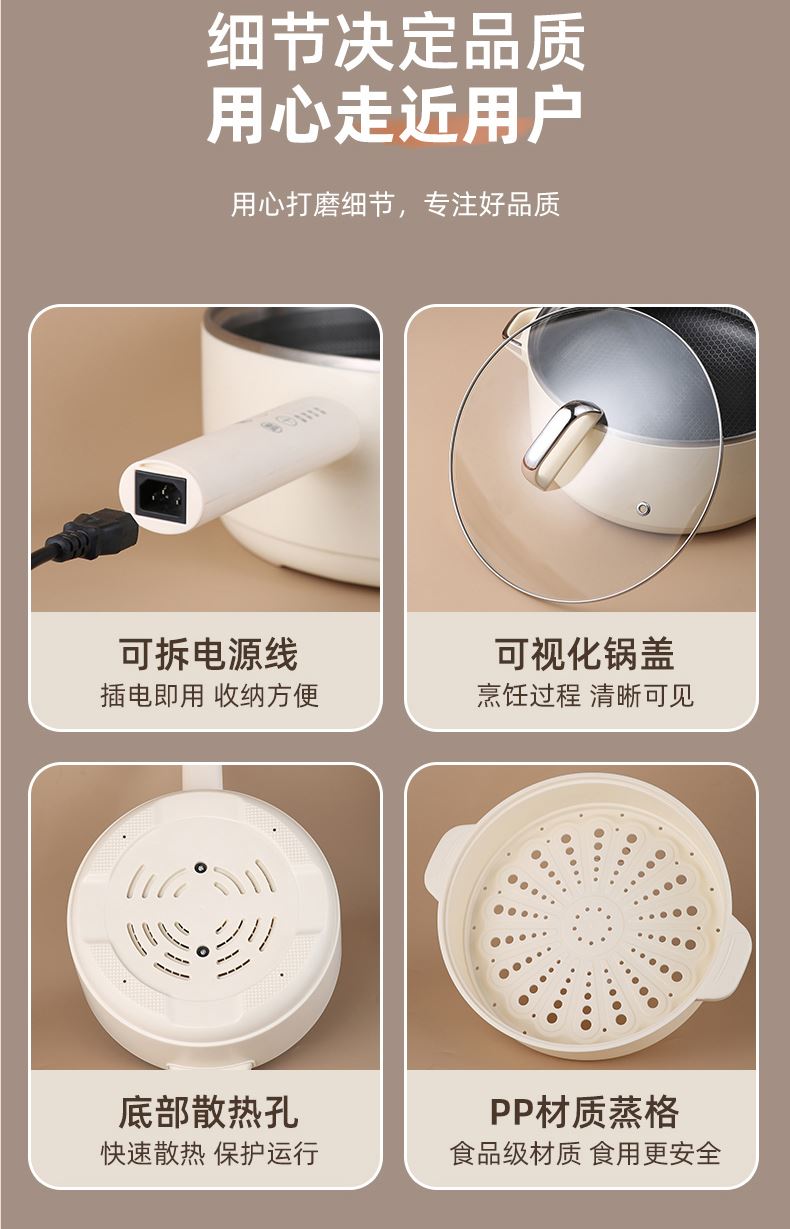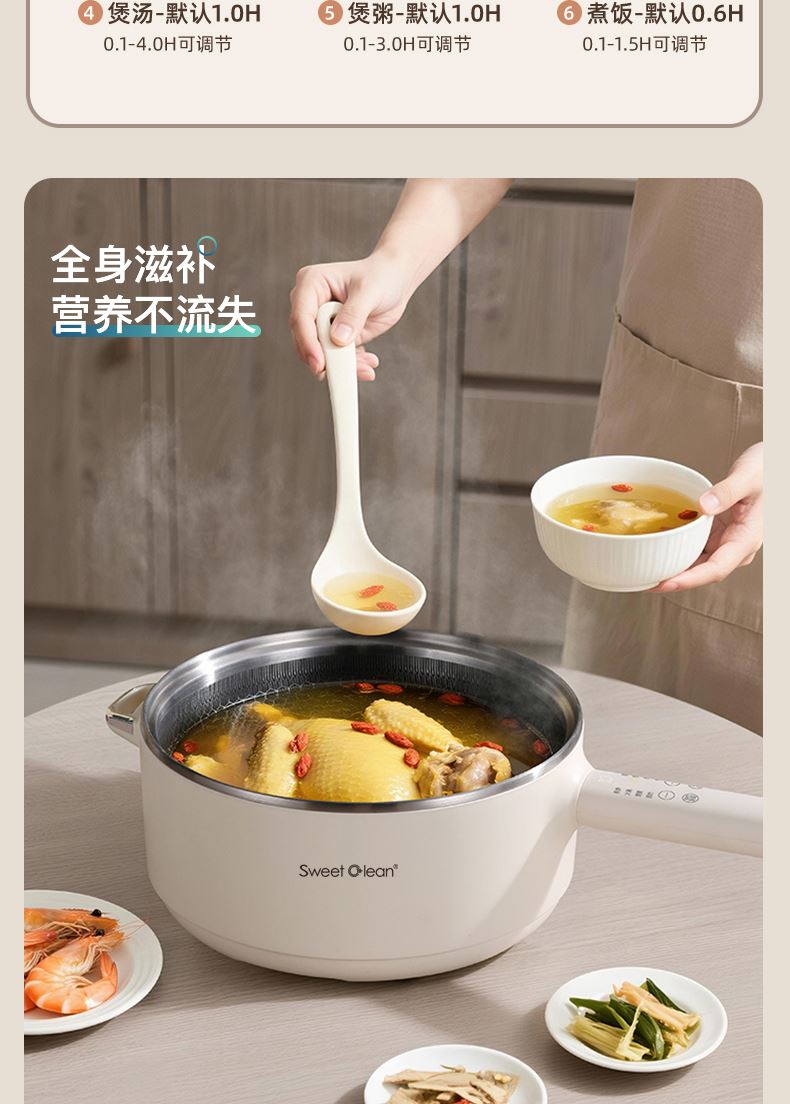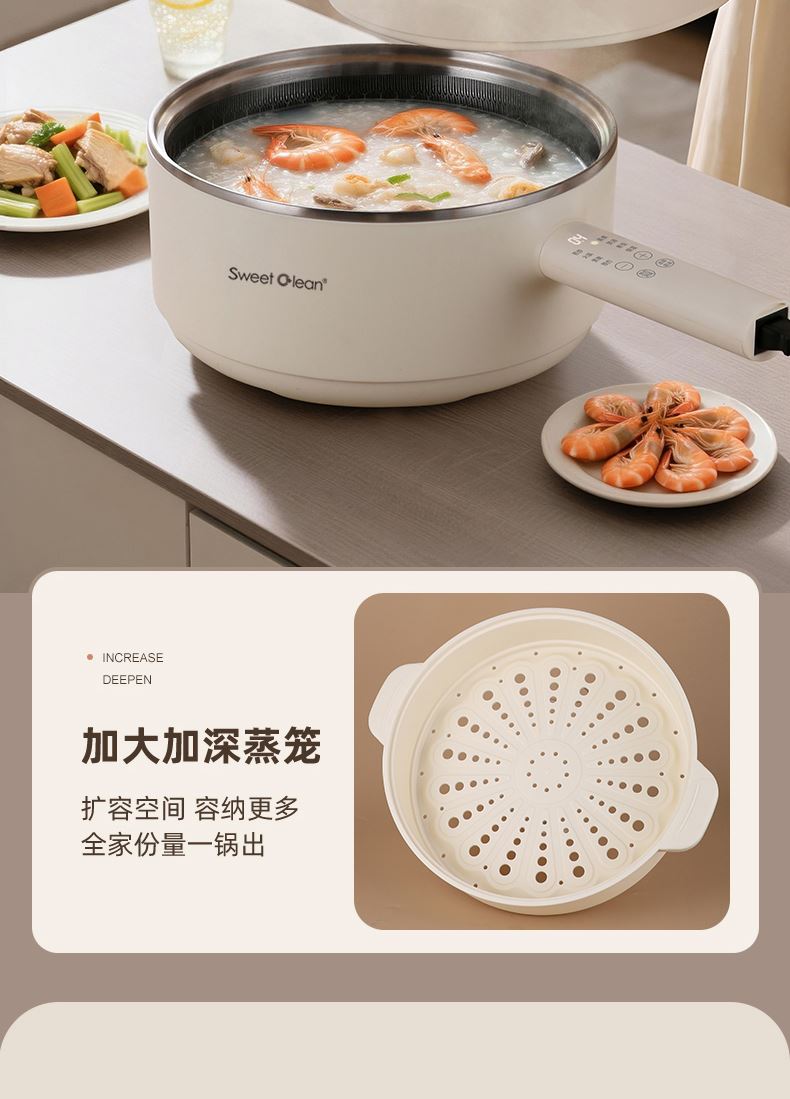 可預(yù)約 + 自動保溫:靈活安排烹飪時間,飯菜出鍋始終溫?zé)峥煽?PP 蒸籠上蒸下煮:一鍋雙用,省時高效,飯菜湯同步出鍋
