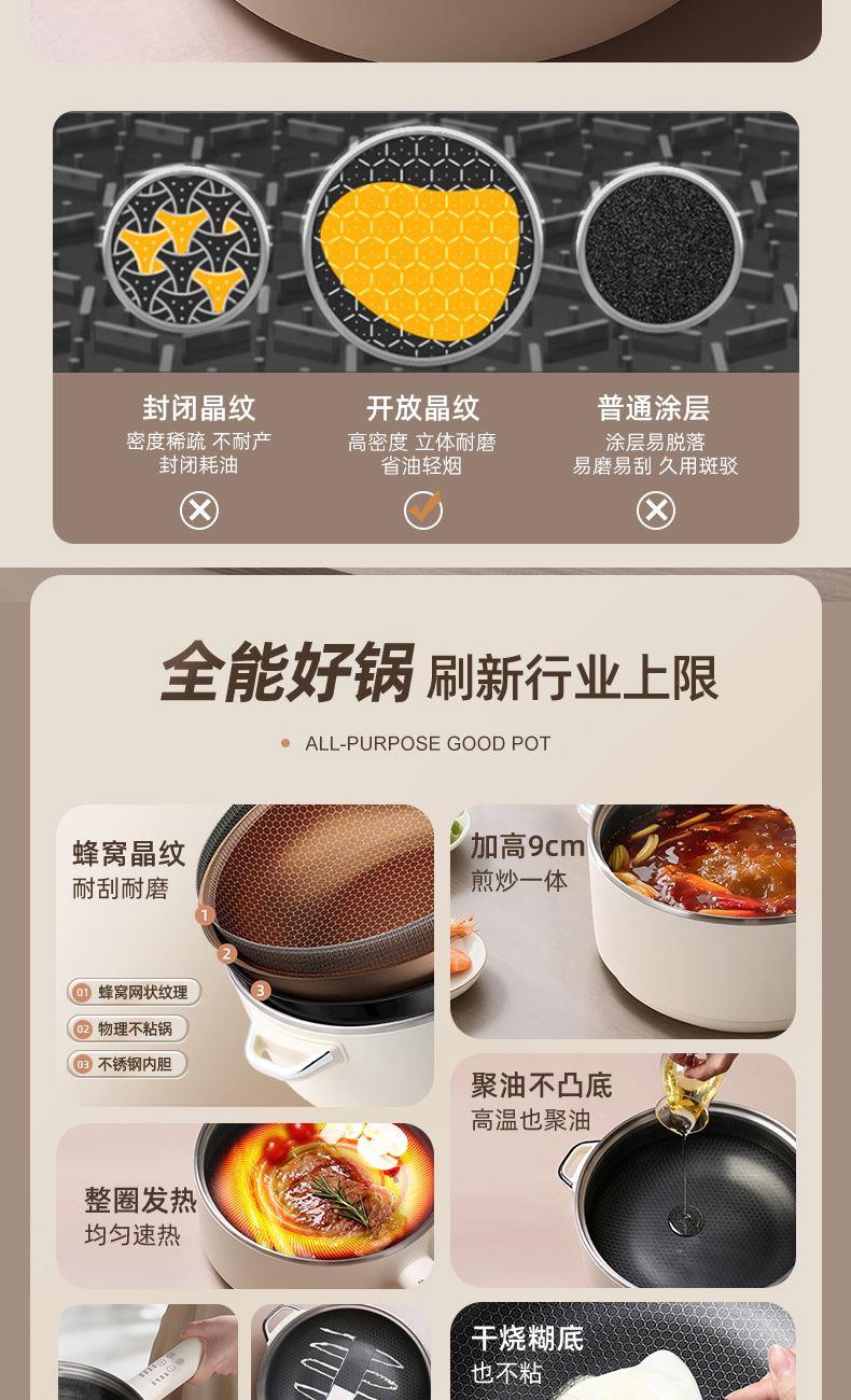 升級不銹鋼蜂窩不粘內(nèi)膽:耐磨抗造,不懼鍋鏟、鋼絲球,耐用更省心