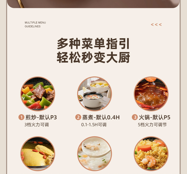 9 大智能功能菜單:煎炒煮燜燉蒸樣樣行,一鍵操作,老人也會用