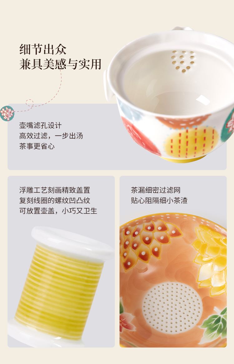 3.器型豐富多樣,一套還原傳統(tǒng)飲茶方式。除茶壺和茶杯外,搭配公道杯、蓋置、