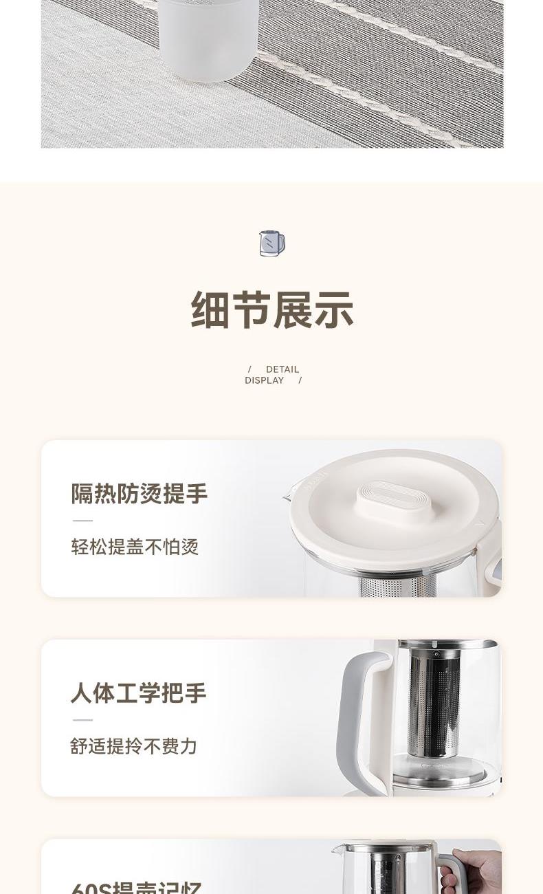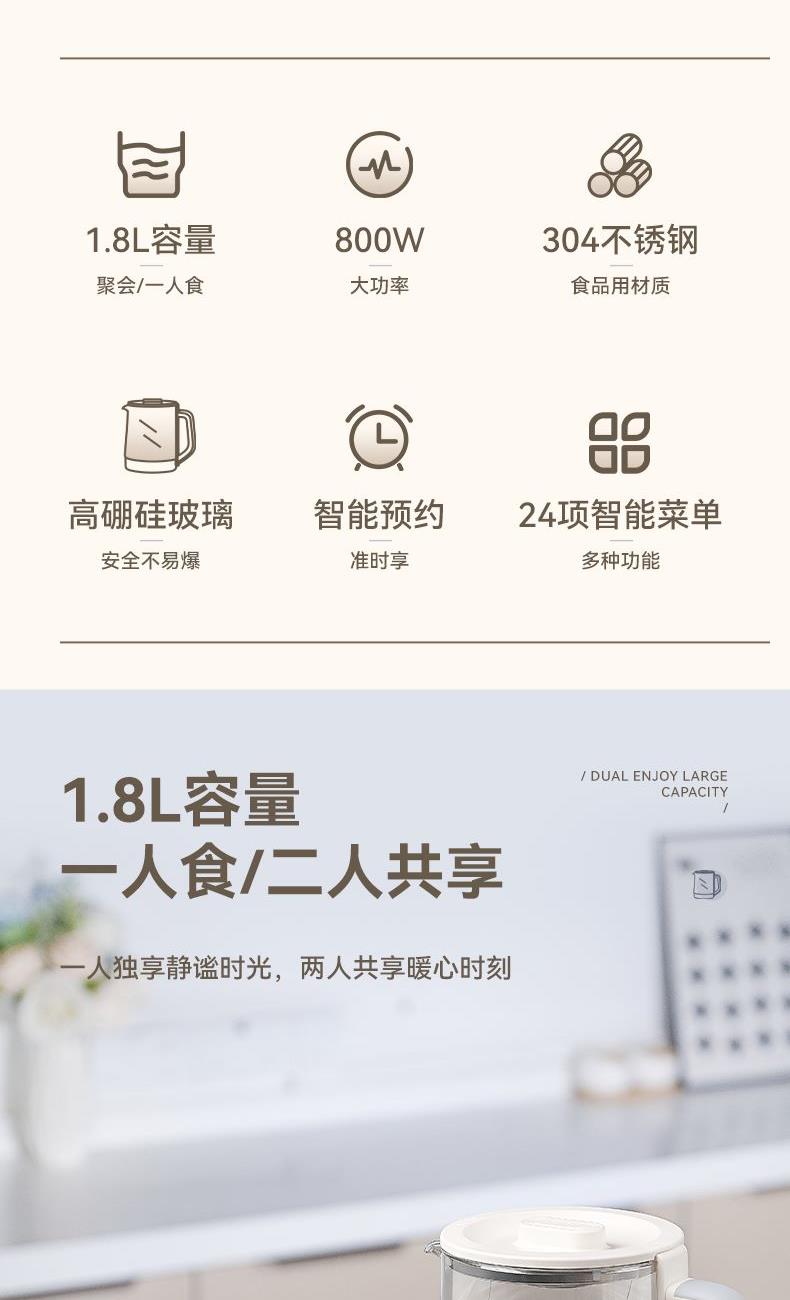 產(chǎn)品顏色:白色 產(chǎn)品材質(zhì):高硼硅玻璃+304不銹鋼 額定電壓:220V~ 額定頻率:50Hz 額定功率:800W 額定容量:1.8L 產(chǎn)品凈重:1.0KG 產(chǎn)品毛重:1.2KG 產(chǎn)品尺寸:220*170*210mm 包裝尺寸:245*210*257mm 外箱尺寸:755*435*530mm 單臺(tái)為彩盒包裝;12臺(tái)/箱