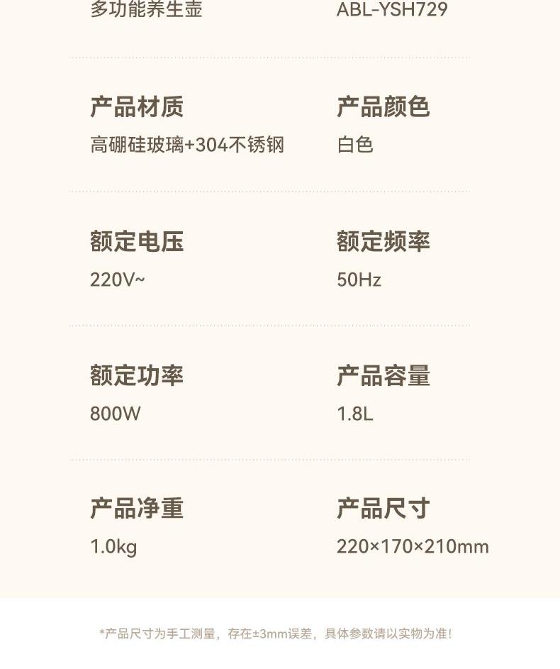 艾貝麗養(yǎng)生壺ABL-YSH729