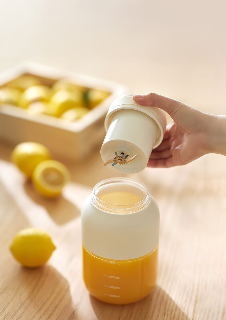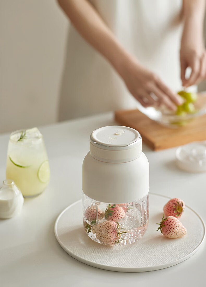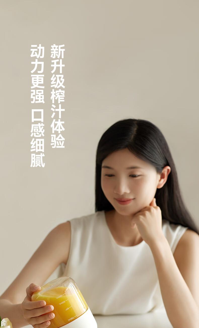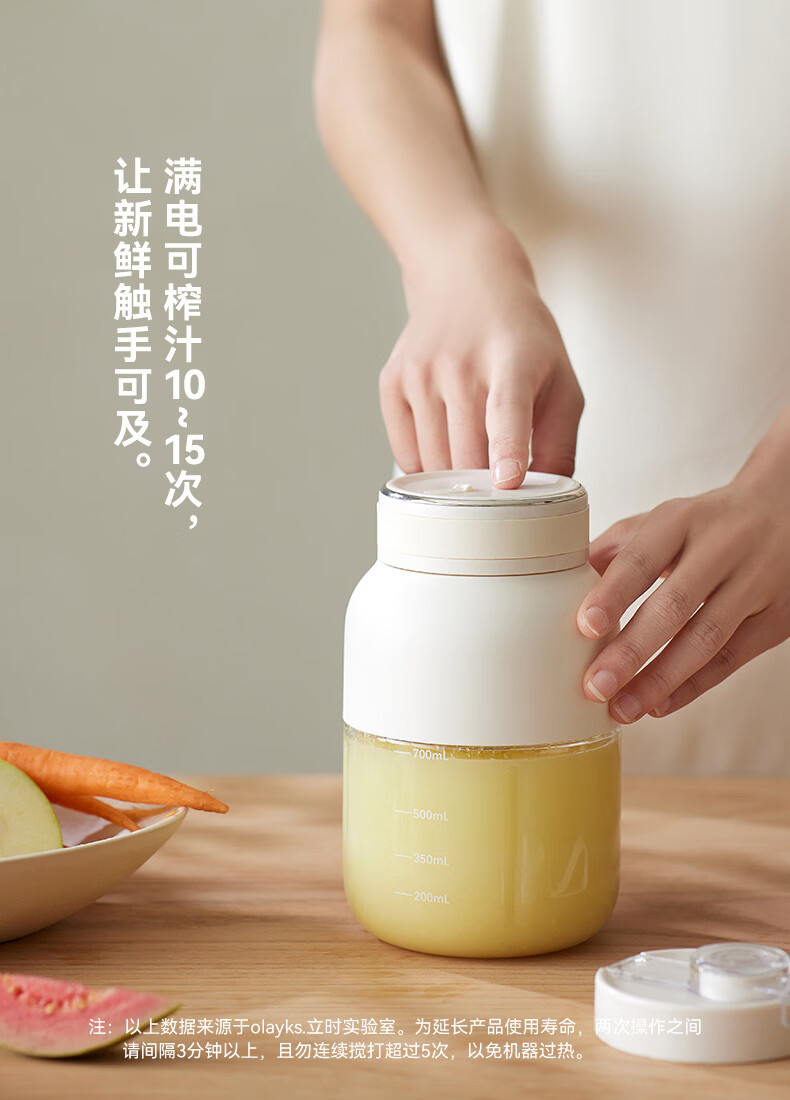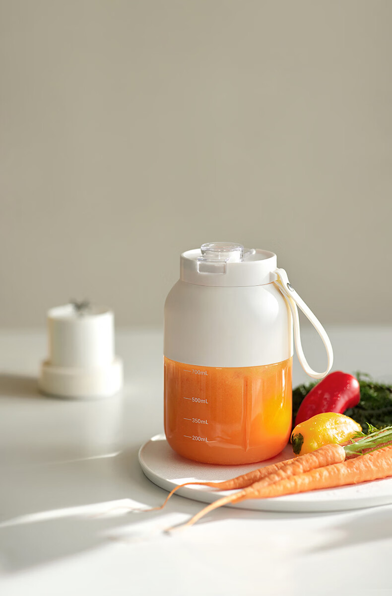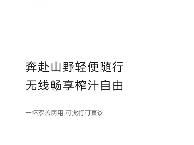 顏色:陶白色 容量:1L 毛重:0.6kg 電池容量:3000mAh 額定功率:80W 產(chǎn)品尺寸:108.5*108.5*178mm 包裝尺寸:250*118*118mm 條碼 : 6977735713090 1. 304精鋼刀頭,3層18葉旋風(fēng)刀片 2. 一杯雙蓋兩用,榨汁/飲水隨意切換 3. 3000mAh長續(xù)航,純銅電機(jī)17500轉(zhuǎn)/分鐘動(dòng)力