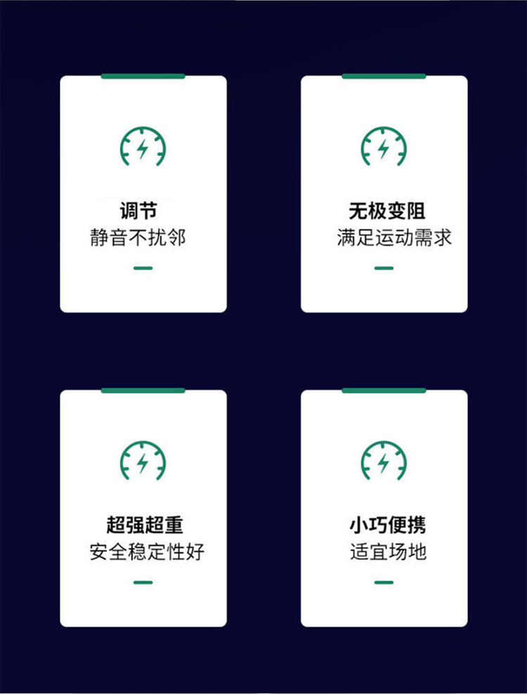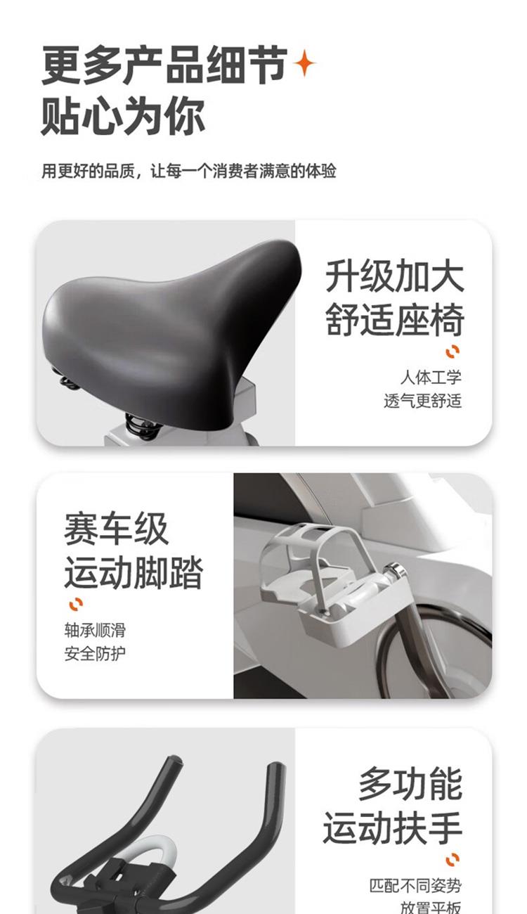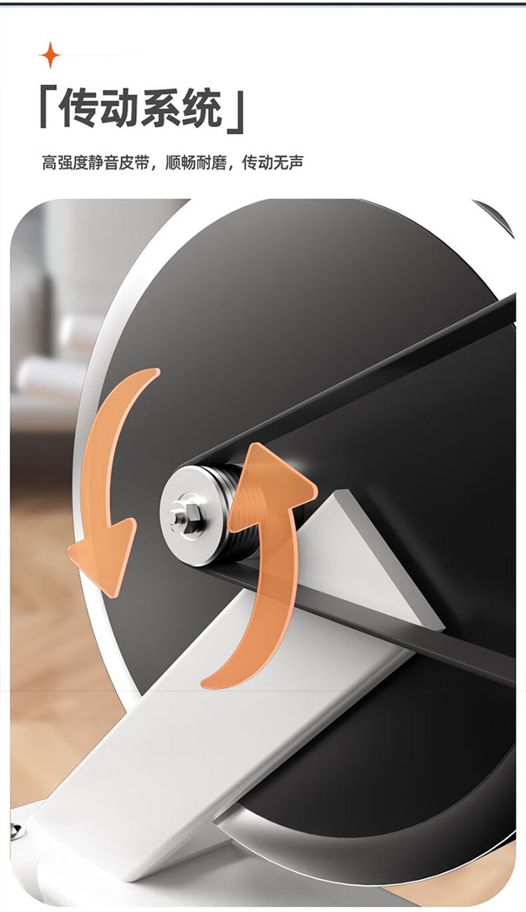 足不出戶盡享運(yùn)動歡益,轉(zhuǎn)速順暢穩(wěn)定,增加您的樂趣體驗。①高強(qiáng)度靜音皮帶,順暢耐磨,傳動無聲。②創(chuàng)新彈簧,減震功能,保護(hù)膝蓋關(guān)。③多種調(diào)節(jié)方式 各種身高人群都能找到更舒適的騎乘體位。④磁控調(diào)節(jié)靜音不擾鄰,無極變阻滿足運(yùn)動需求。