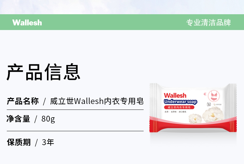威立世Wallesh內(nèi)衣專(zhuān)用皂規(guī)格:80g
