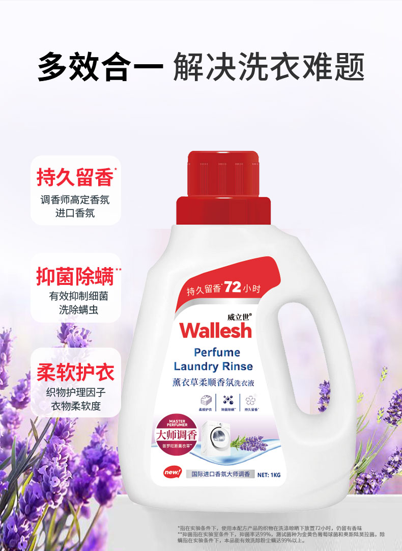 威立世Wallesh薰衣草柔順香氛洗衣液規(guī)格:1kg