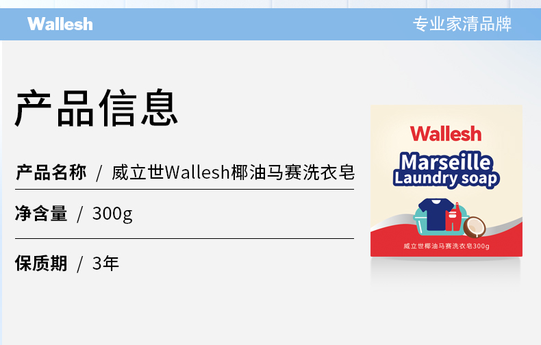 威立世Wallesh椰油馬賽洗衣皂規(guī)格:300g