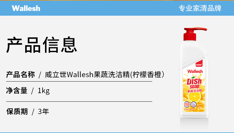 威立世Wallesh果蔬洗潔精(檸檬香橙)規(guī)格:1kg