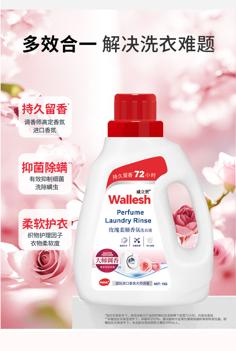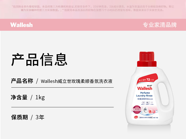 威立世Wallesh玫瑰柔順香氛洗衣液規(guī)格:1kg