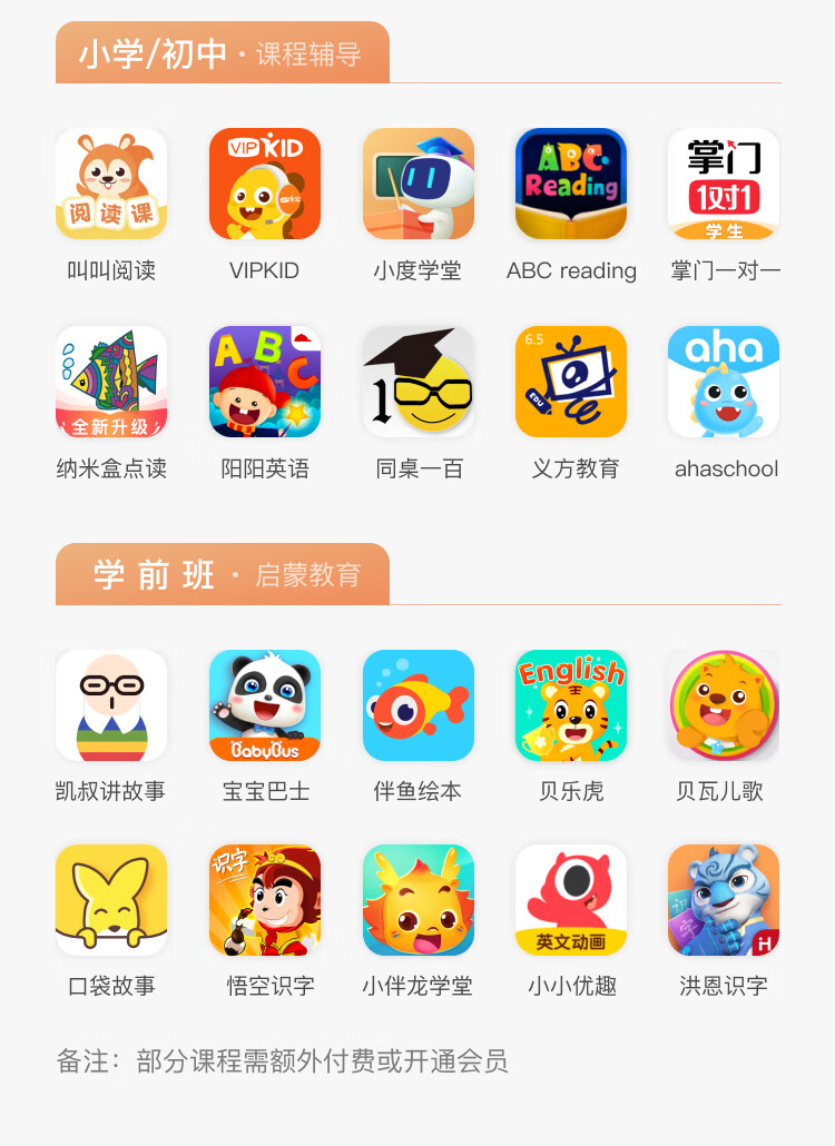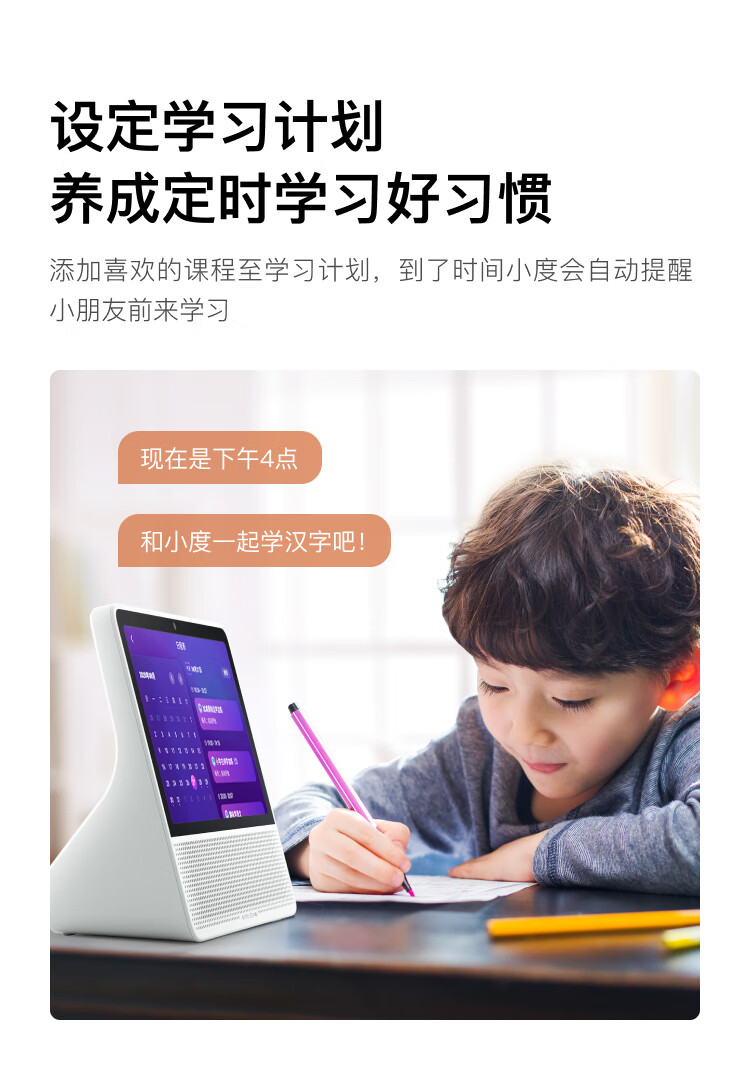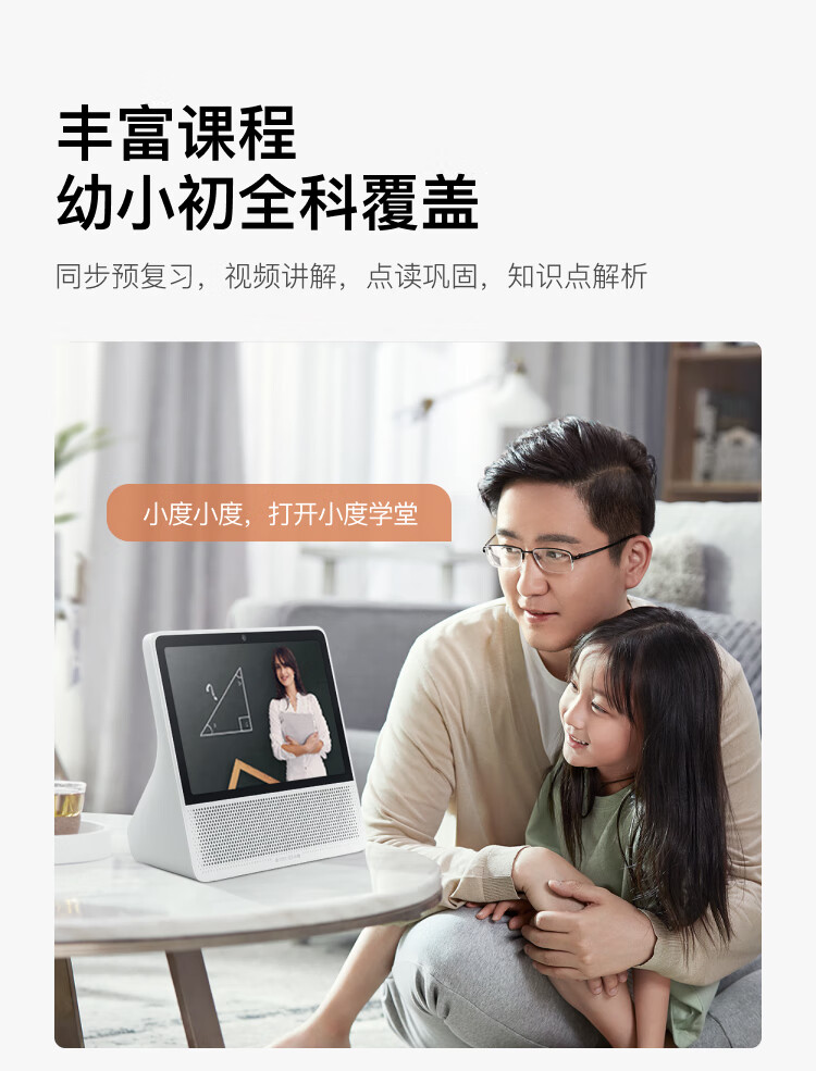 趣味百科:接入百度搜索,為孩子解答十萬(wàn)個(gè)為什么 學(xué)習(xí)資源:幼小初全科覆蓋同步預(yù)復(fù)習(xí) 親情陪伴:視頻通話、模仿家長(zhǎng)講故事陪伴不缺席