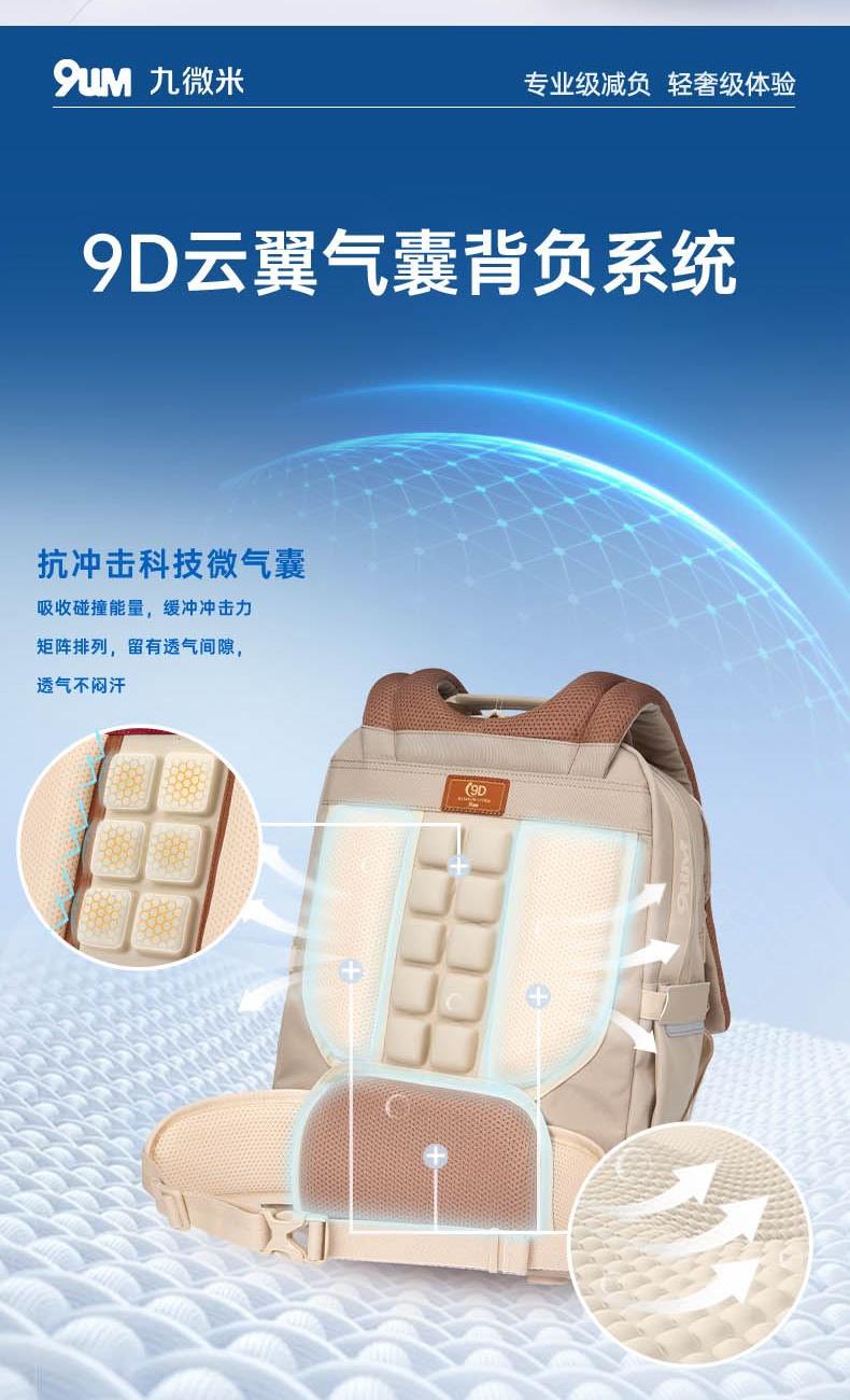 卡拉羊九微米中學生防下墜減負氣囊云朵書包U5095冰川灰 禮品已成功加入PPT!