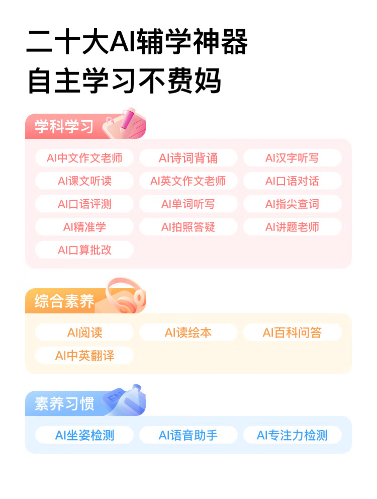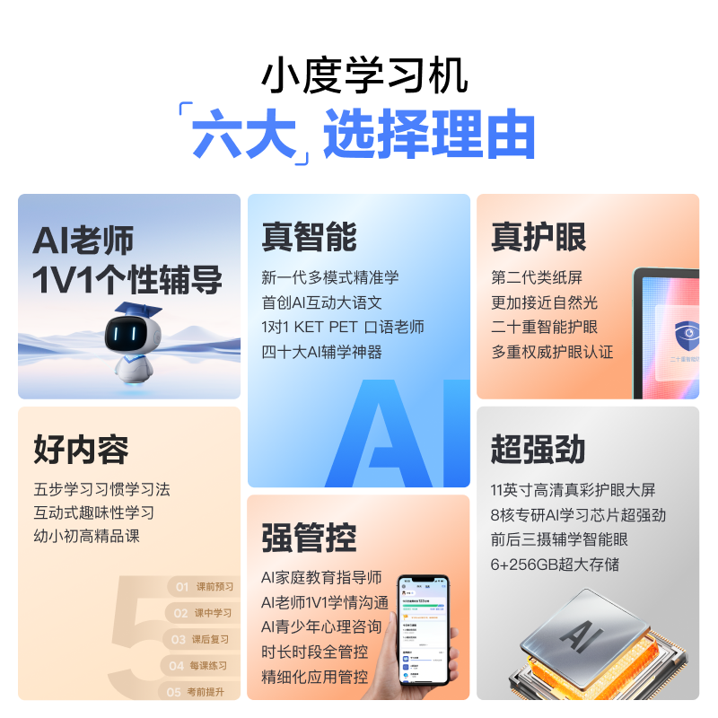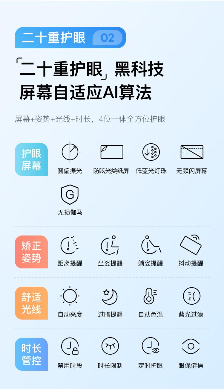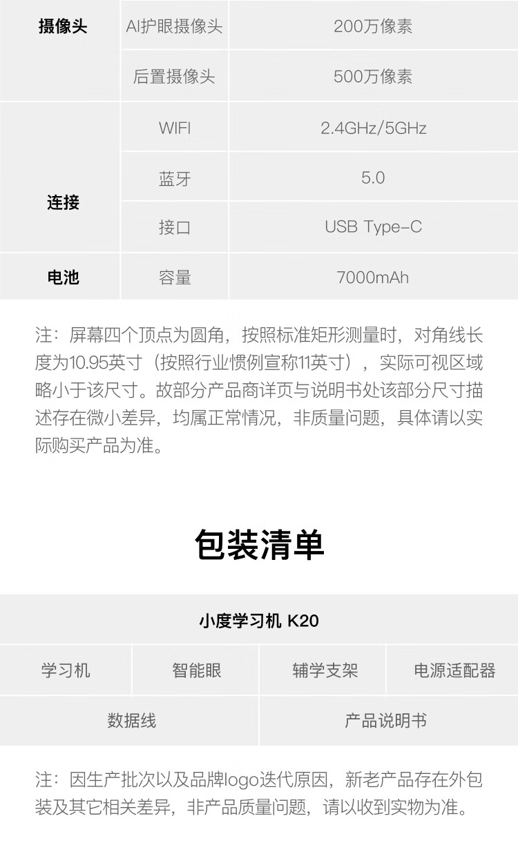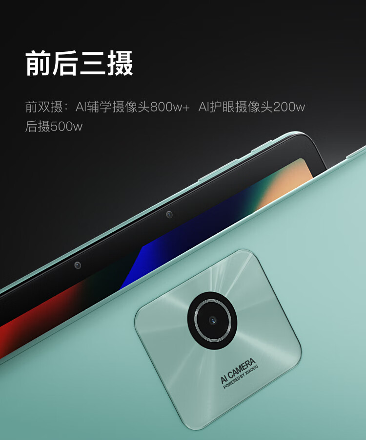 攝像頭:AI輔學攝像頭800萬像素,AI護眼攝像頭200萬像素,后置500萬像素