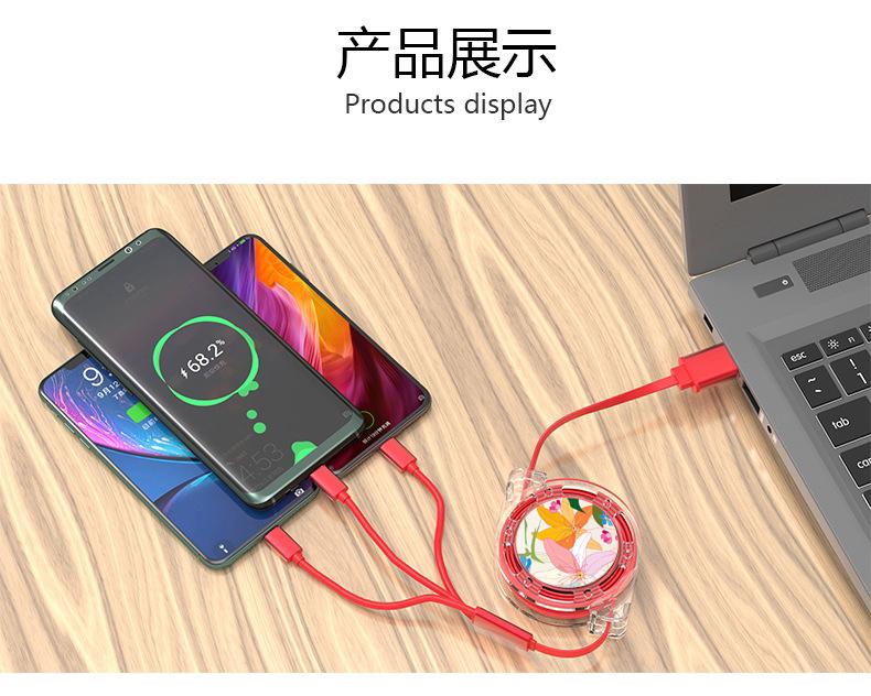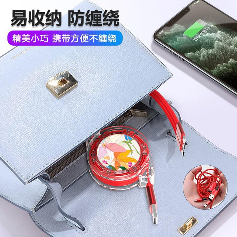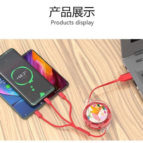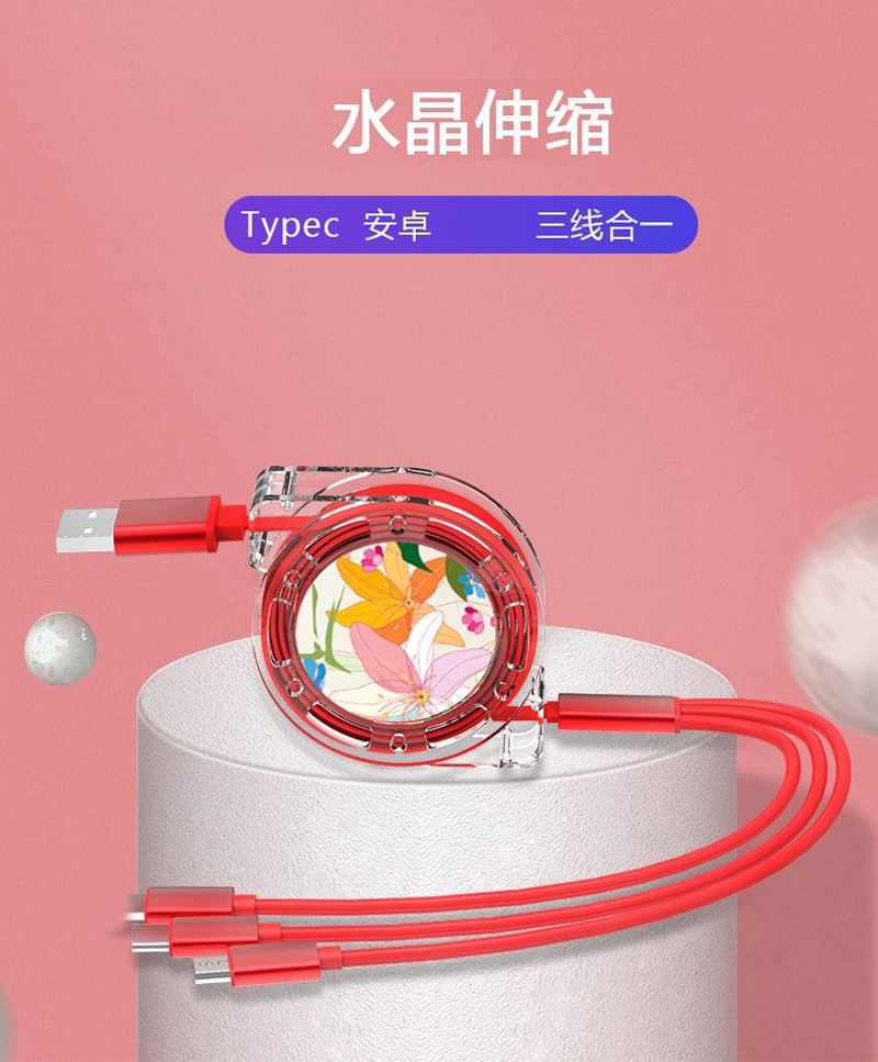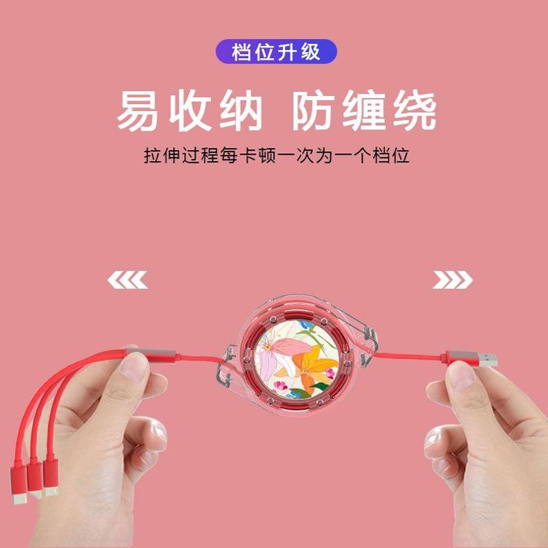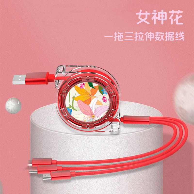 愛爾沃女神花一拖三拉伸數據線 愛爾沃女神花一拖三拉伸數據線