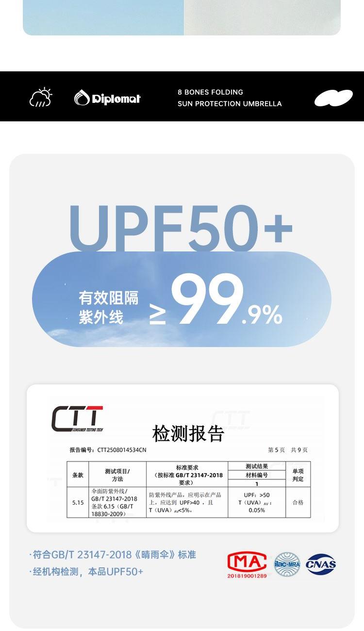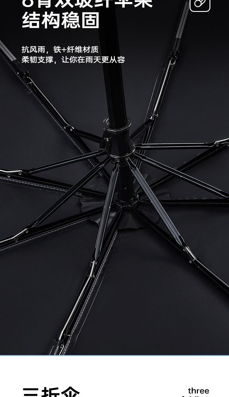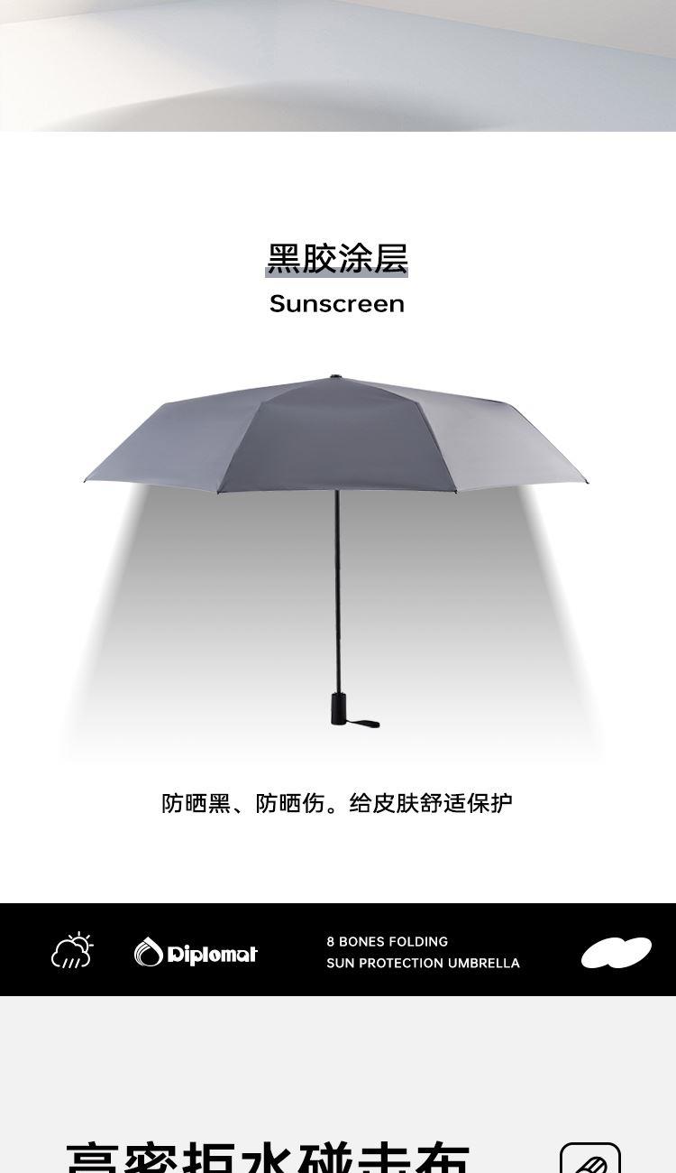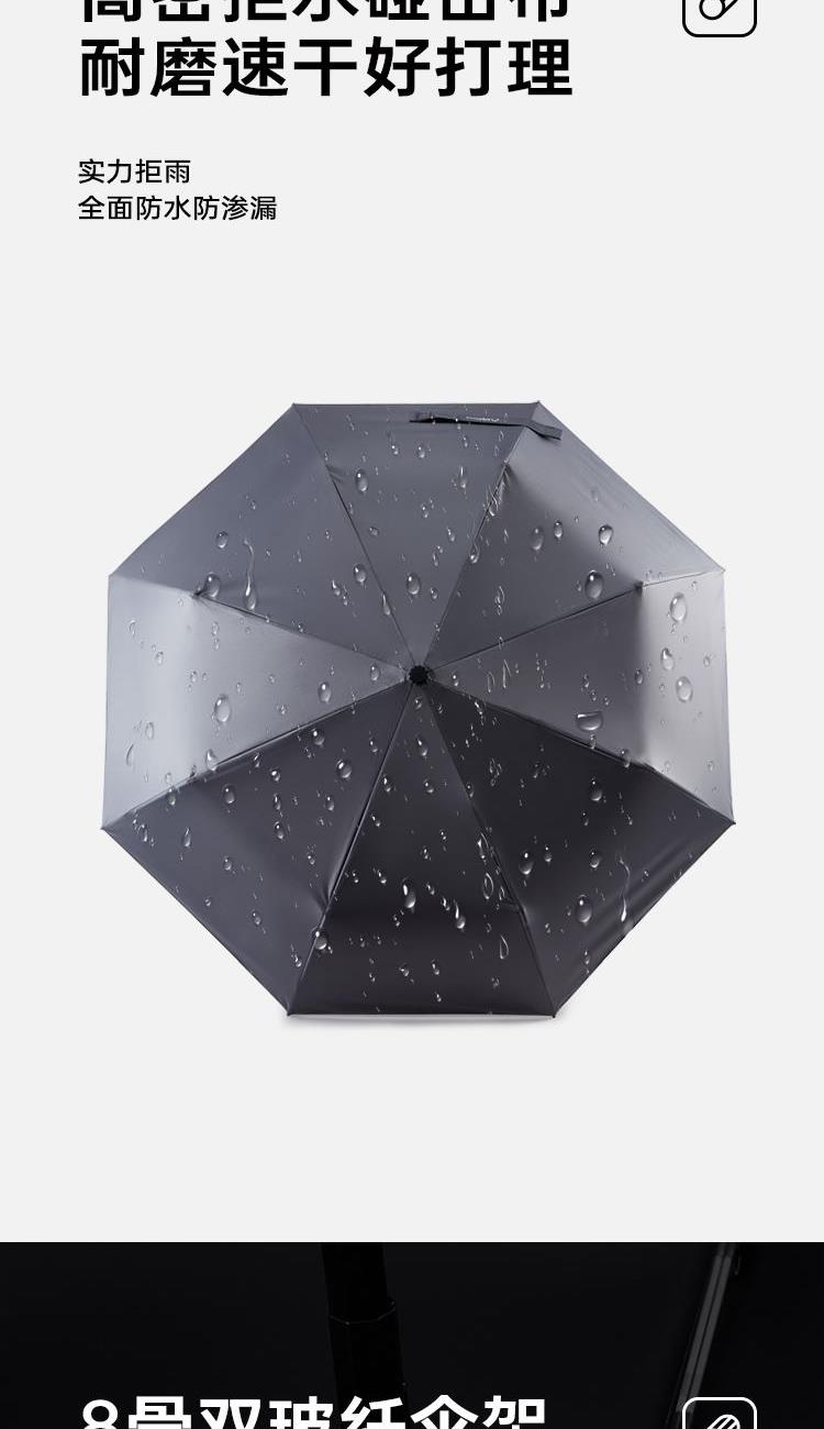 產(chǎn)品尺寸:展開53.5cmx8K 收納29cm 產(chǎn)品材質:聚酯纖維(內涂黑膠)+鐵+纖維 產(chǎn)品顏色:雅致灰 產(chǎn)品包裝:傘套+PE袋 1、升級8骨雙玻纖傘架,抗風能力加強。 2、內涂黑膠,防曬UPF50+,晴雨兩用。 3、精致握把,輕便合手,持握舒適。