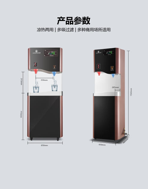 貨號:BW-2XY-BM 水膽容量:12+12 升(帶無菌溫開水箱) 功率:2+0.5KW 電源: AC220V/50Hz 外形尺寸:650×480×1565 ㎜(帶腳輪) 出水咀數(shù): 一開一溫白開 適用人數(shù):50-80 人; 溫度顯示形式: 數(shù)碼屏顯示 電氣控制形式: 觸控式出水 主要過濾配置:RO200+6G