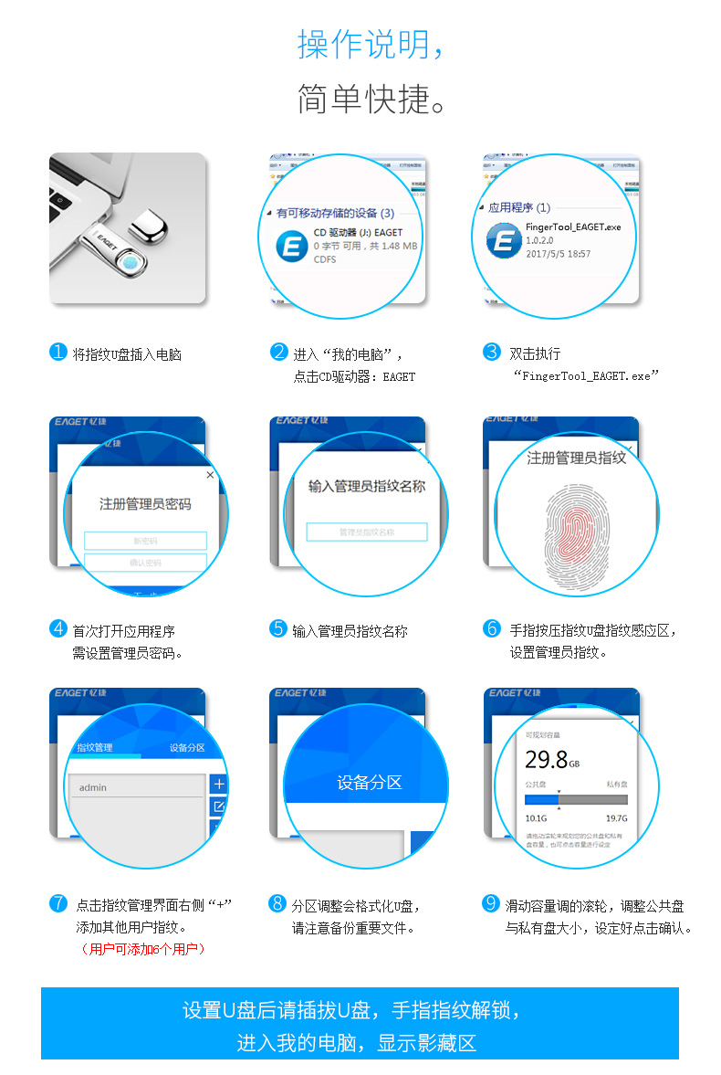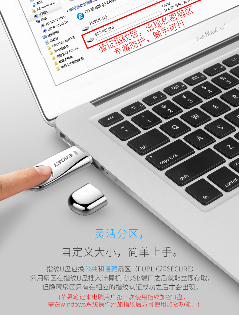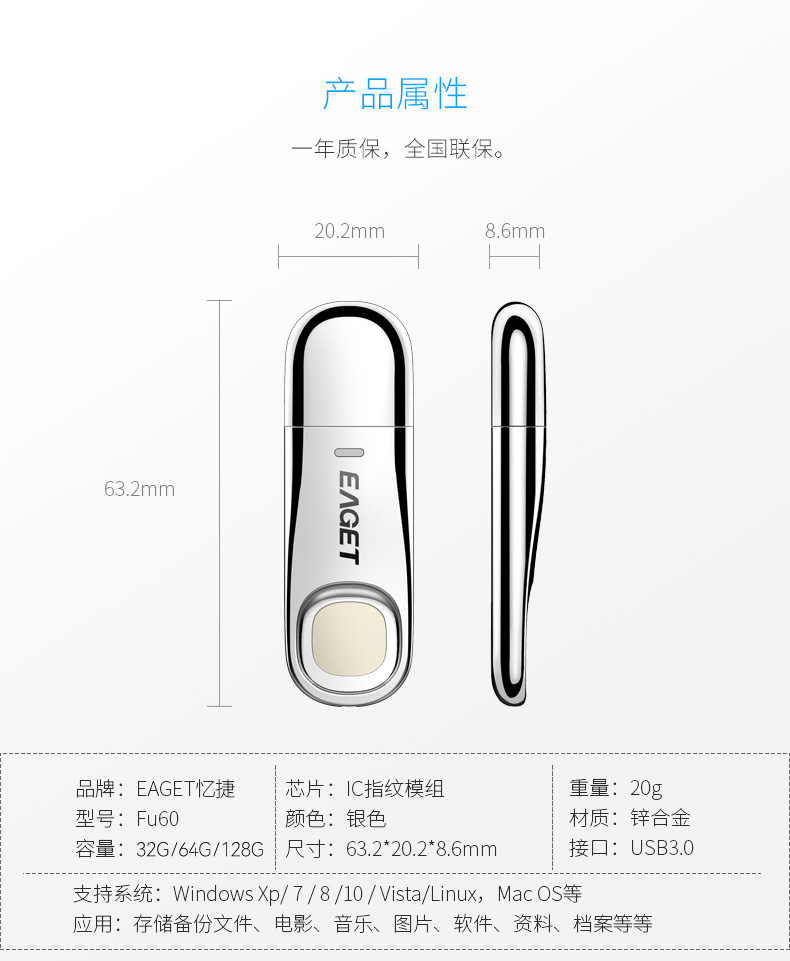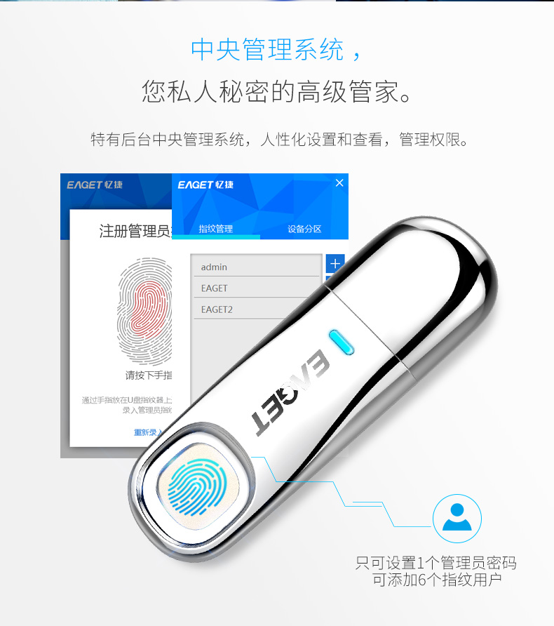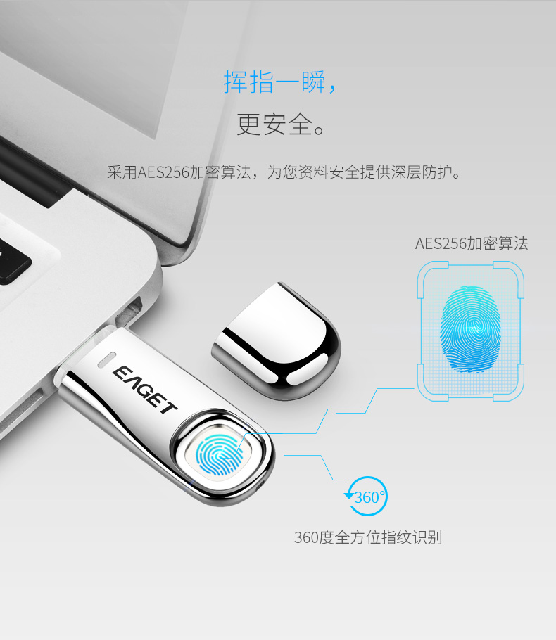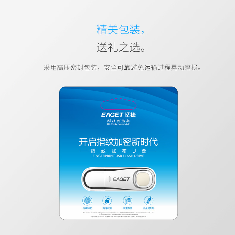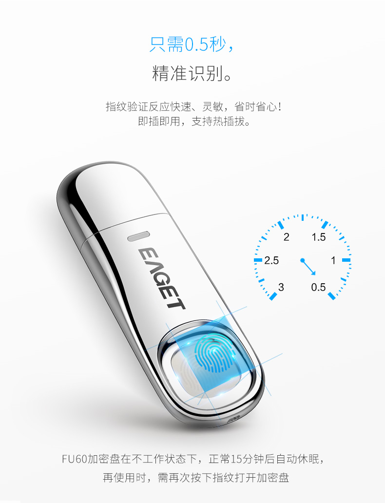 (EAGET)憶捷FU60指紋加密U盤防泄密全盤加密64GB (EAGET)憶捷FU60指紋加密U盤防泄密全盤加密64GB