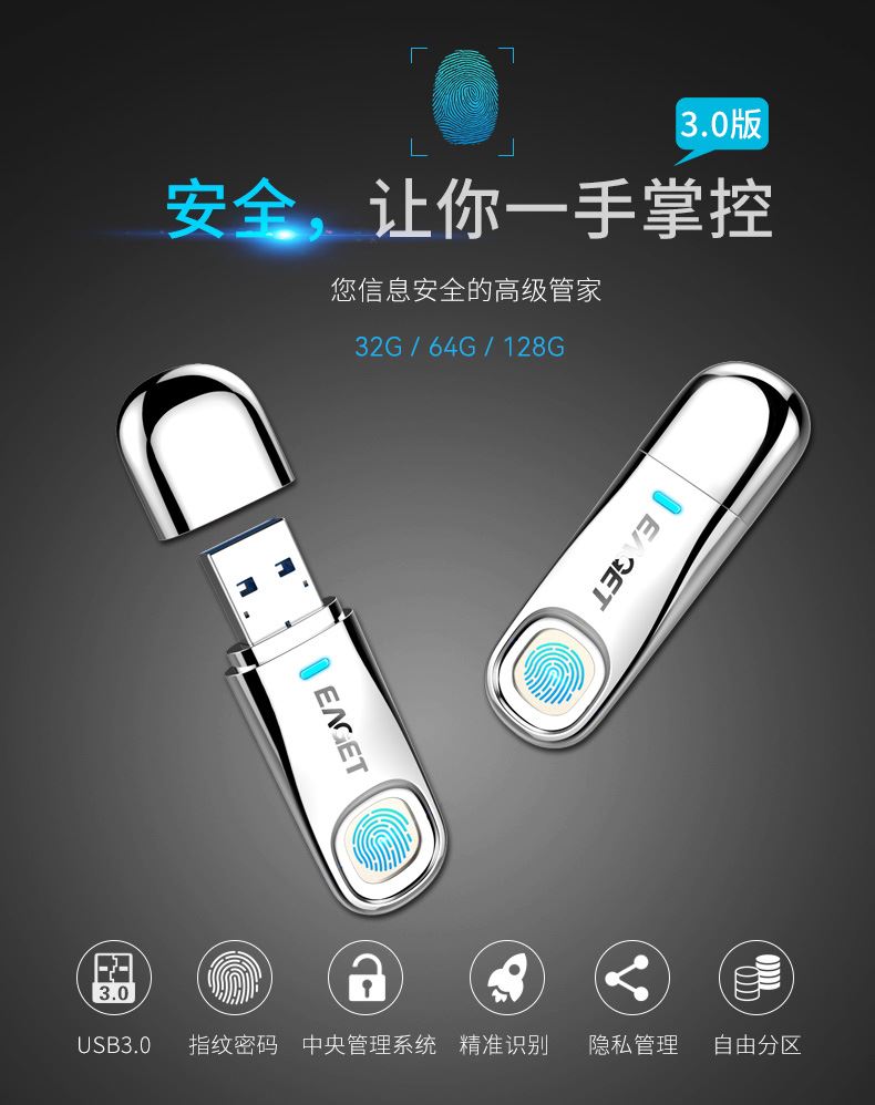 (EAGET)憶捷FU60指紋加密U盤防泄密全盤加密64GB