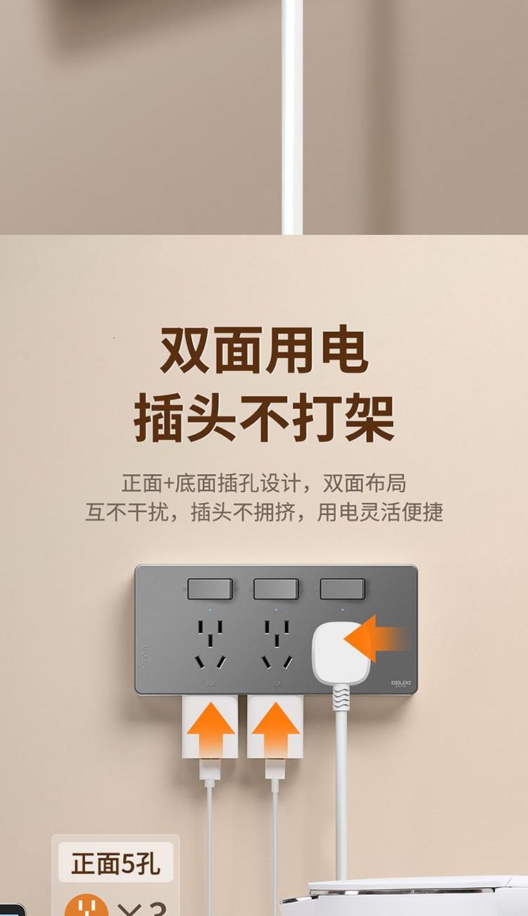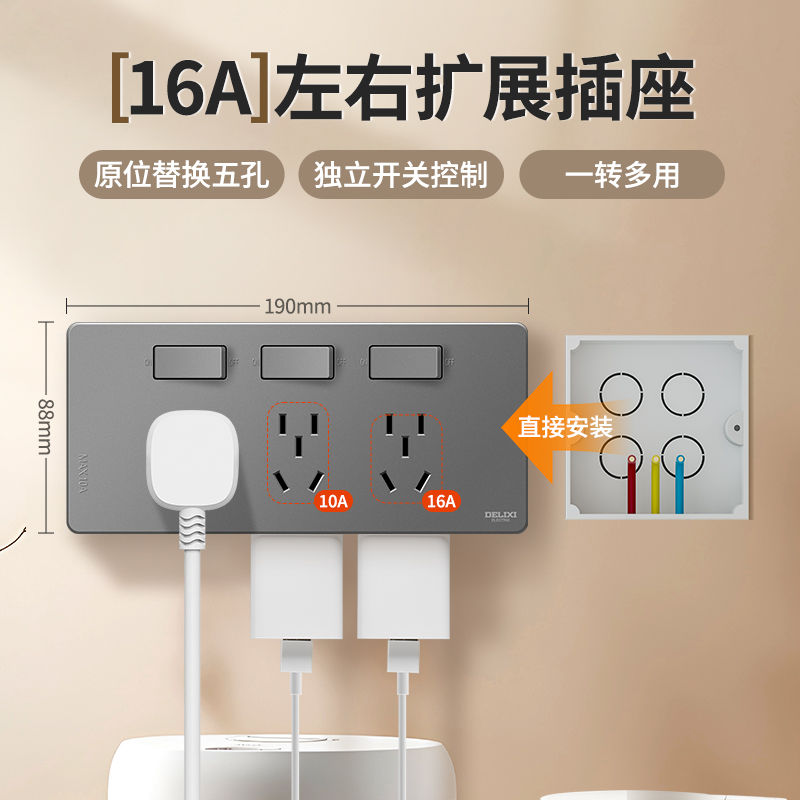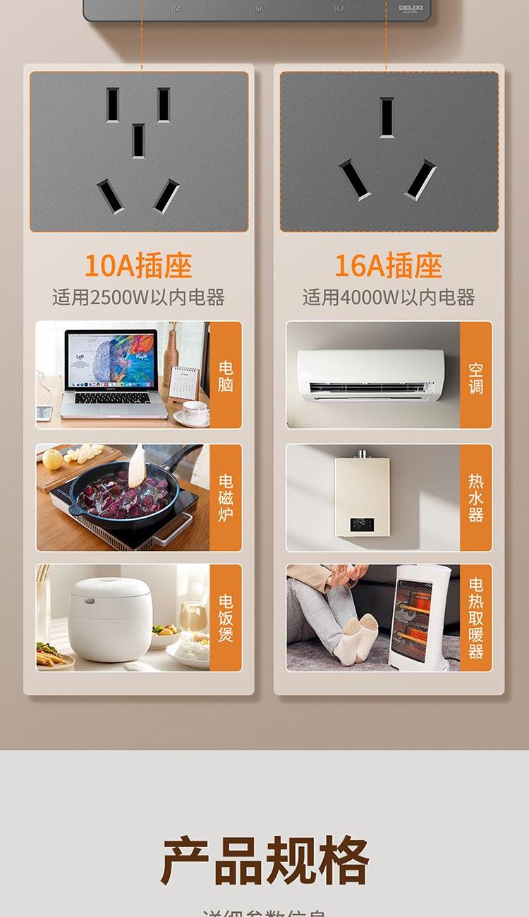 德力西DETC系列十六孔插座10A+三孔插座16A(星空灰) 禮品已成功加入PPT!