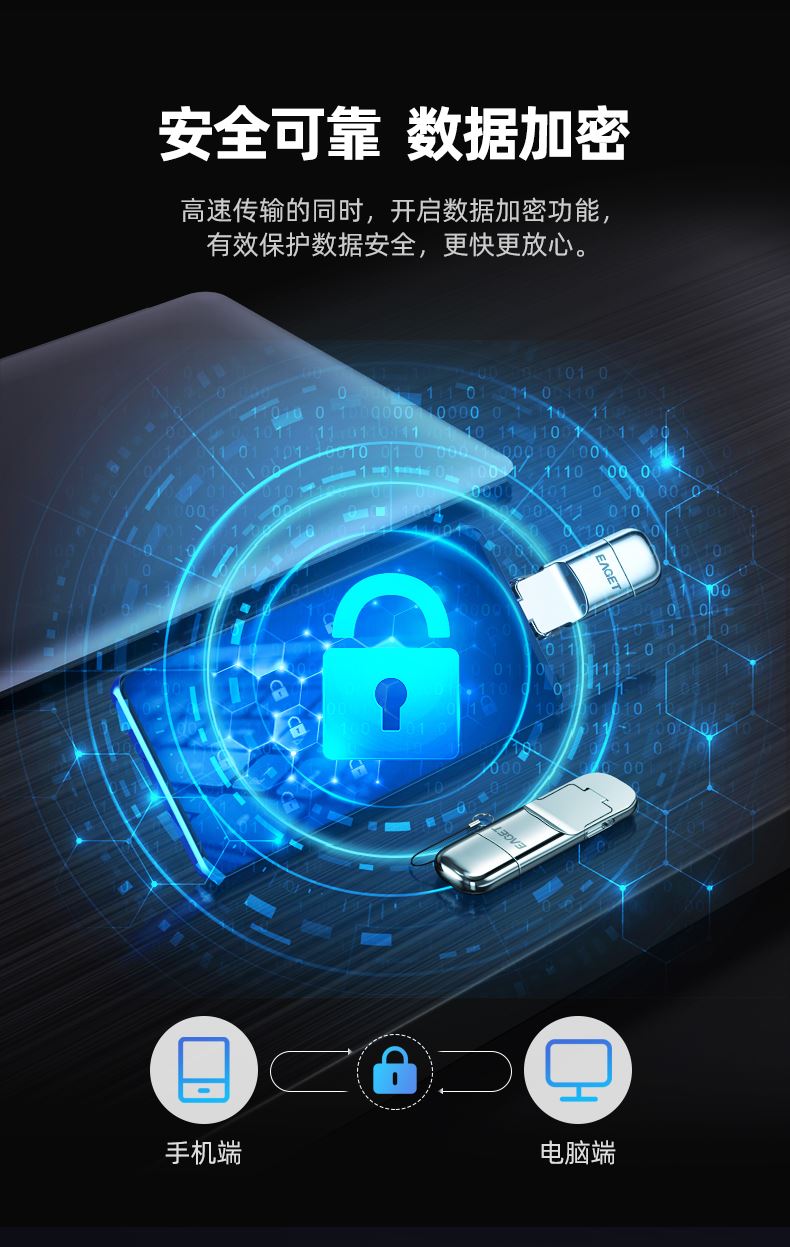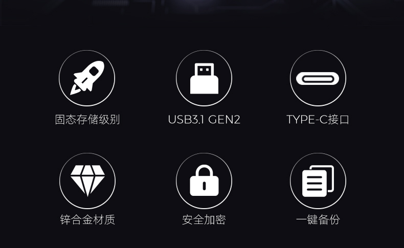 Type-C/USB3.2雙接口 采用雙接口傳輸 USB3.2固態(tài)高速傳輸 一鍵備份、數(shù)據(jù)加密 專屬APP、智能管理 產(chǎn)品尺寸:58.5*20.4*8.4mm 包裝尺寸:113*100*10mm 單品重量:17g