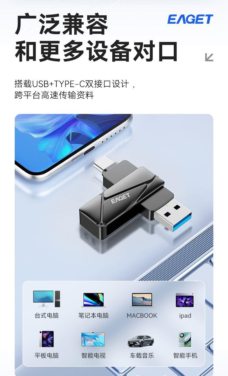憶捷HS66極速固態(tài)U盤(pán)USB3.2手機(jī)雙接口優(yōu)盤(pán)128G