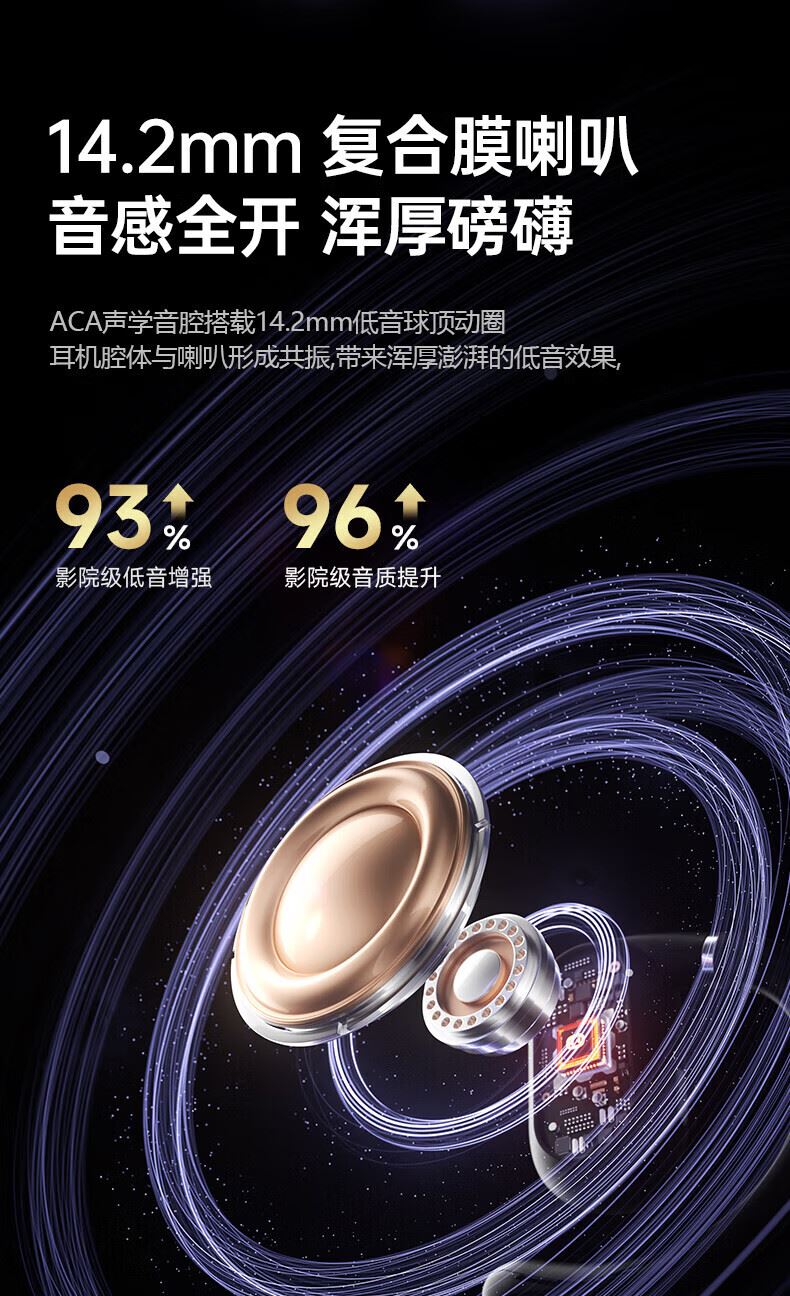 ③ 專業(yè)音質(zhì): 14.2 毫米定制動圈驅(qū)動單元,搭配輕量化多層復合振膜與專業(yè)調(diào)音,全音域還原 音樂細節(jié),低頻澎湃、中頻柔和、高頻清晰。